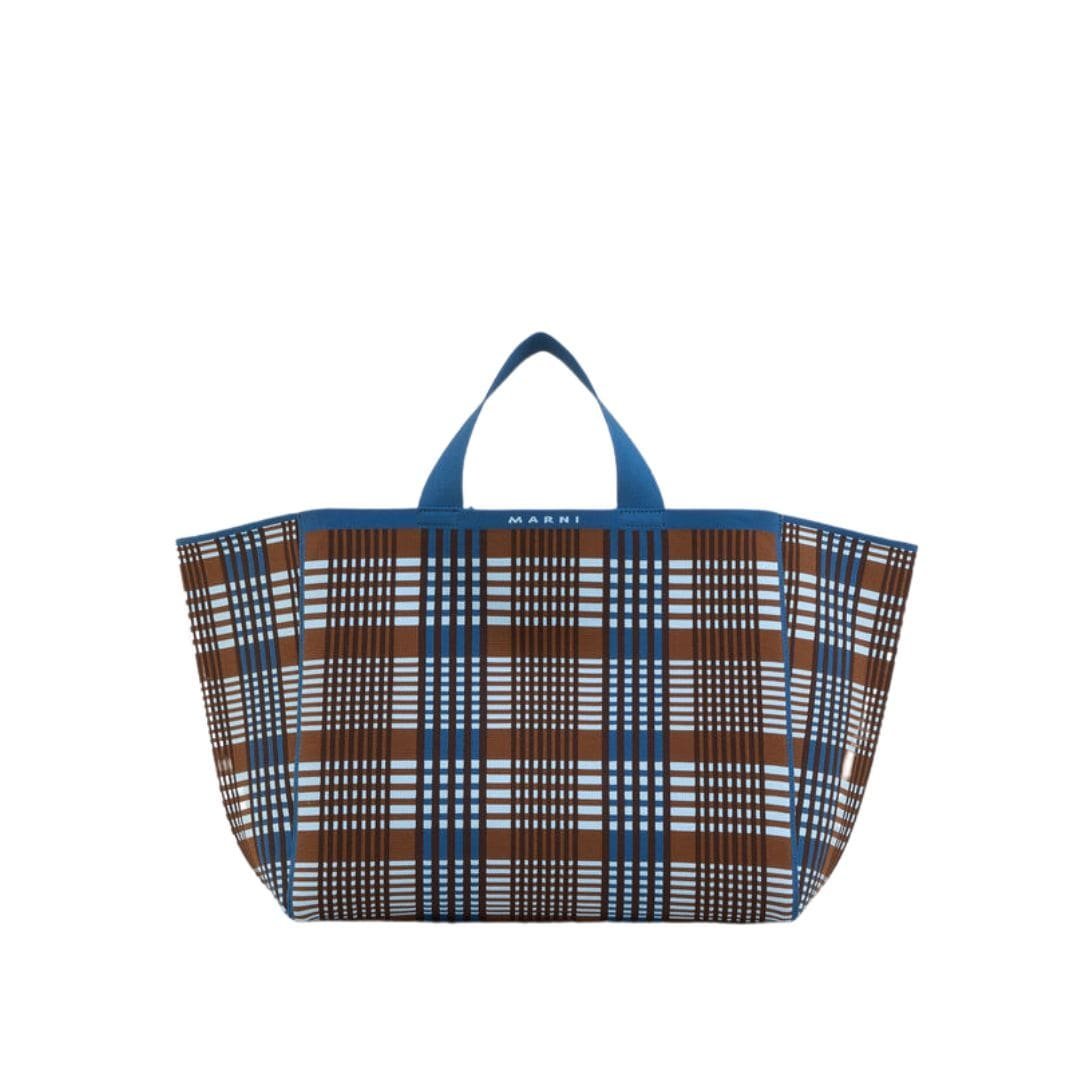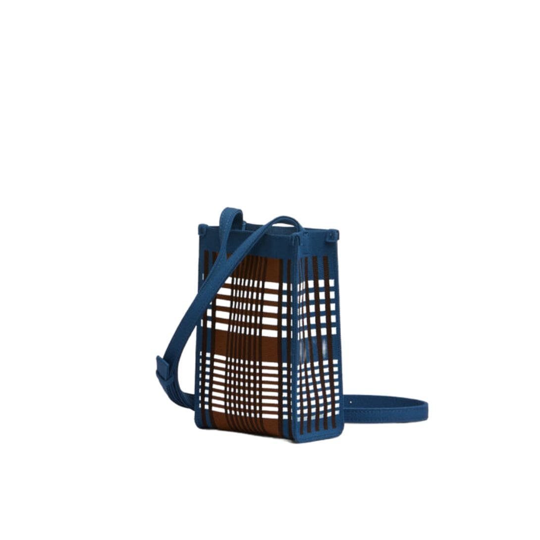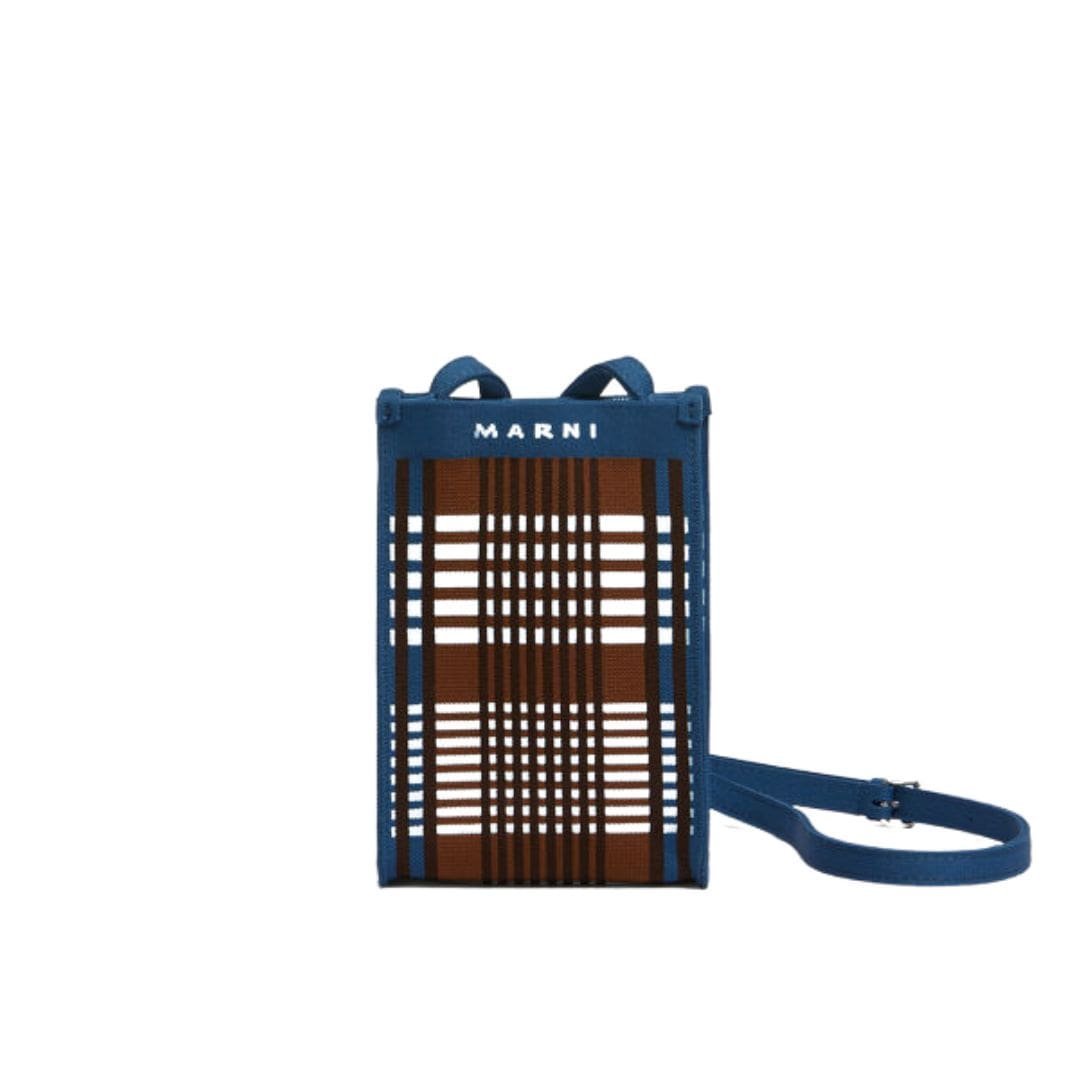 MARNI BLUE AND BROWN JACQUARD CHECK MINI SHOULDER BAG