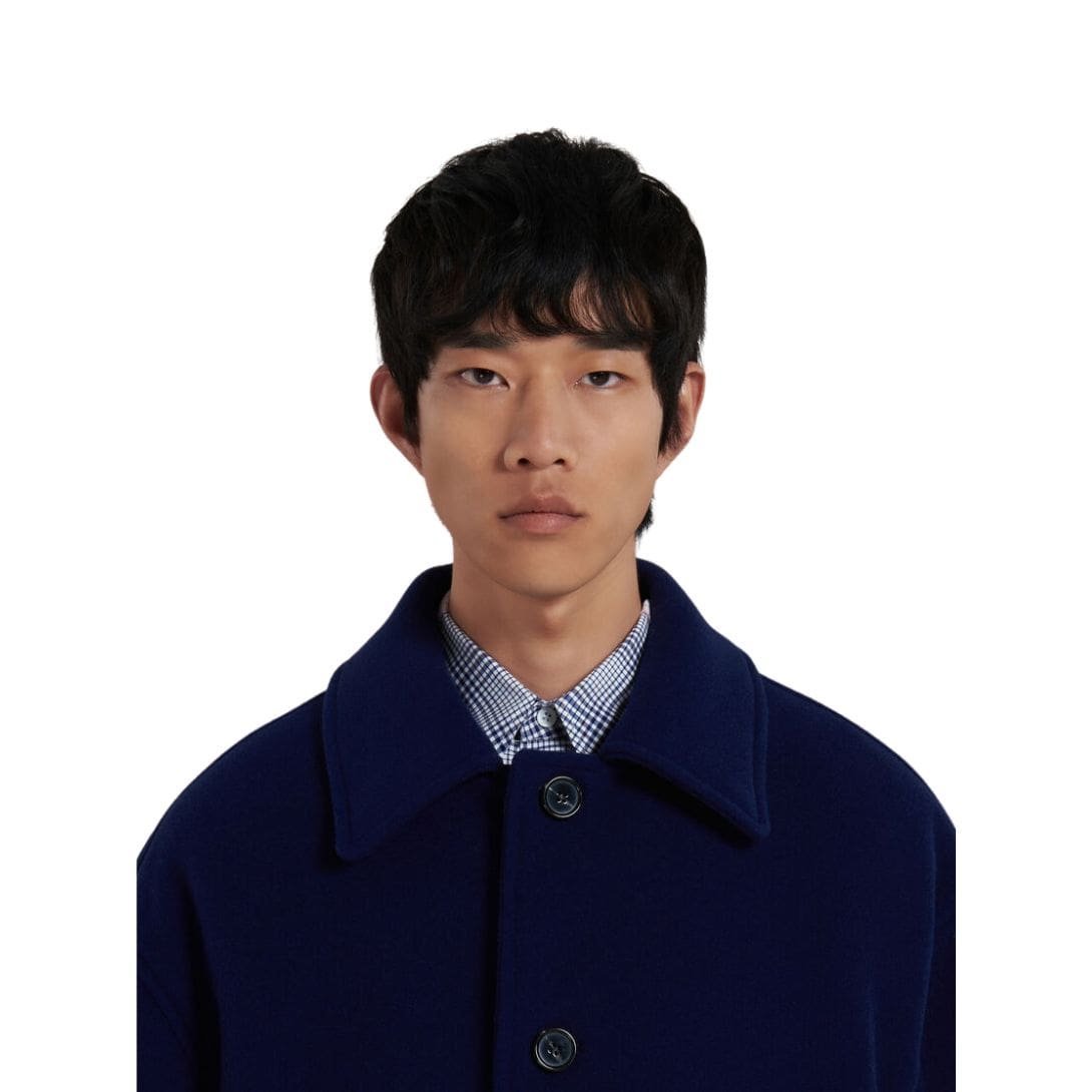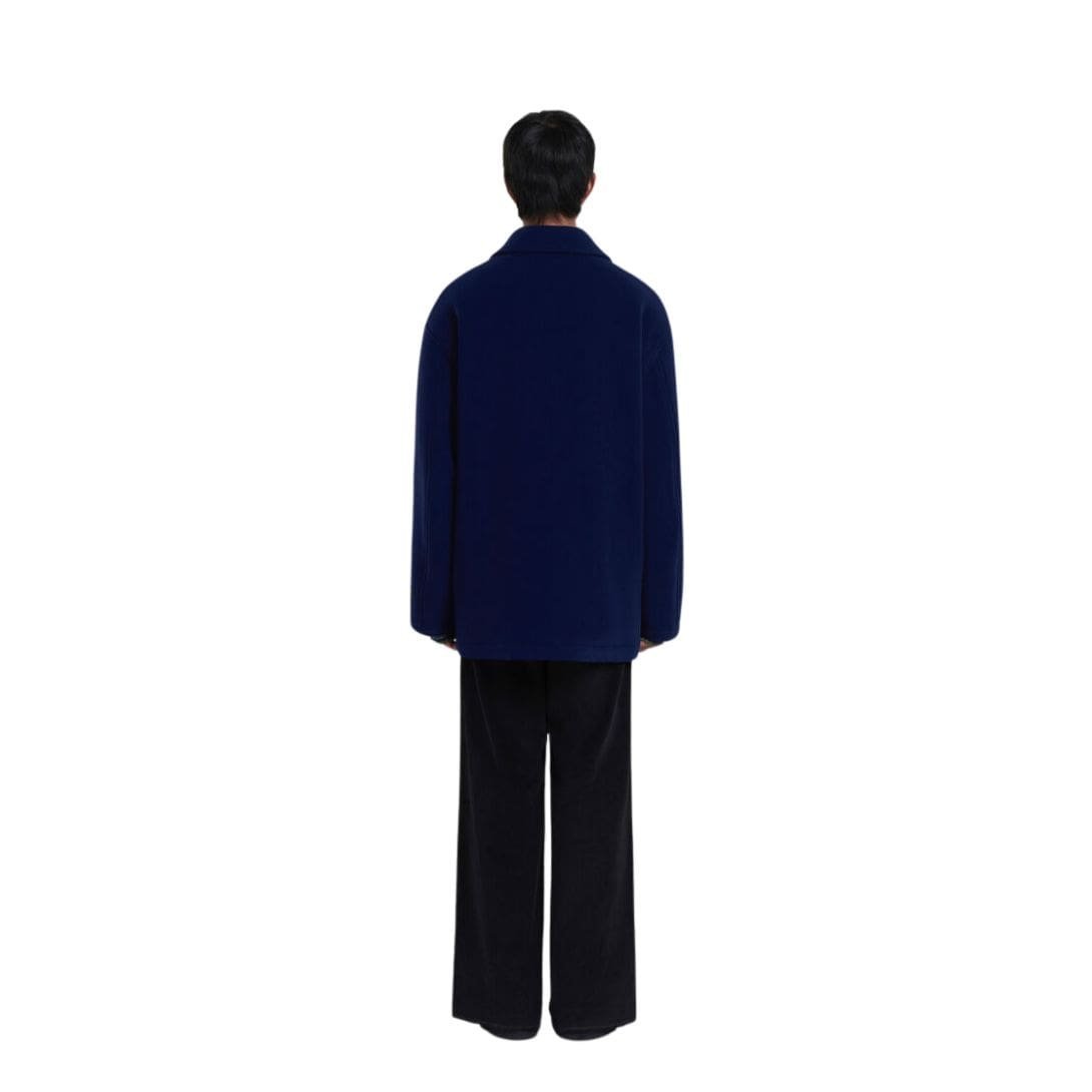 The Marni Blue Wool Felt Caban Coat is tailored to flatter the figure without being overly fitted, allowing for layering and ease of movement. The coat’s overall silhouette is both timeless and modern, making it a versatile addition to any wardrobe. Whether paired with tailored trousers for a refined appearance or thrown over a casual outfit for an elevated touch, this coat is a statement piece that brings both warmth and a touch of luxury to any ensemble.