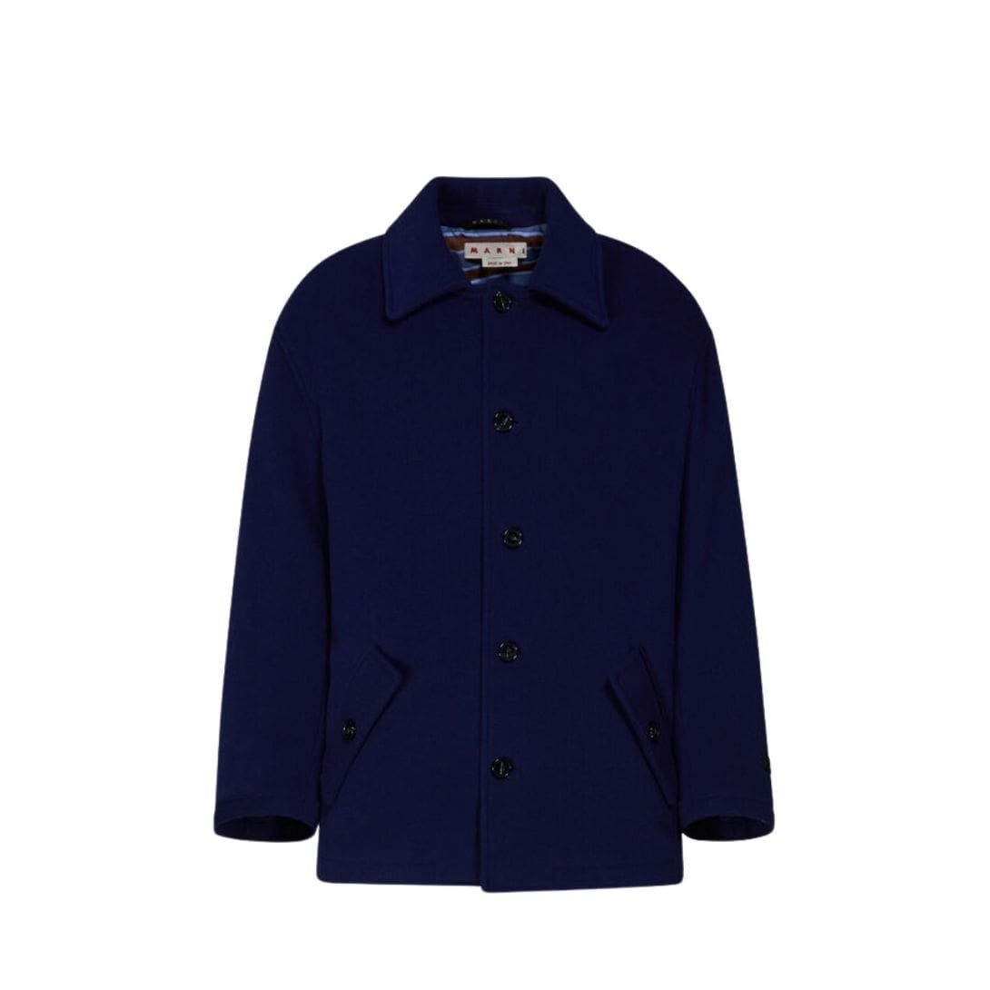 The Marni Blue Wool Felt Caban Coat epitomizes sophisticated elegance with a contemporary twist. Crafted from premium wool felt, this coat combines warmth and luxury with a modern silhouette. The deep, rich blue hue adds a striking element to any outfit, making it a standout piece for the fashion-conscious individual.