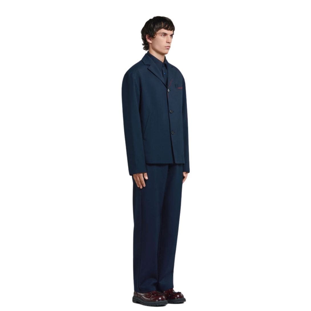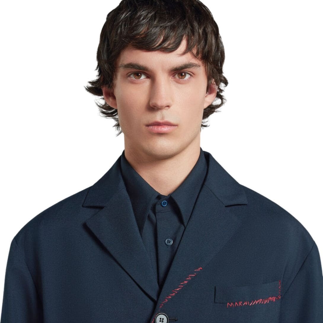 MARNI DEEP BLUE TROPICAL WOOL BLAZER WITH MARNI MENDING
