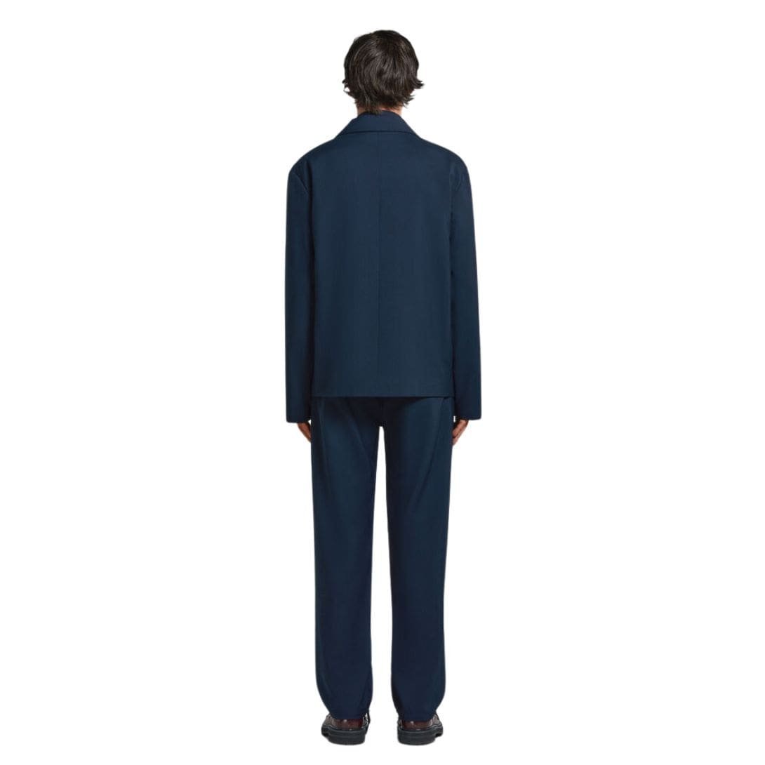 In essence, Marni’s Deep Blue Tropical Wool Blazer with Marni Mending is more than just a stylish addition to any wardrobe; it is a reflection of the brand’s unique vision and its ability to blend tradition with modernity. The blazer stands out as a piece that celebrates both craftsmanship and individuality, making it a valuable and eye-catching item for any fashion enthusiast.