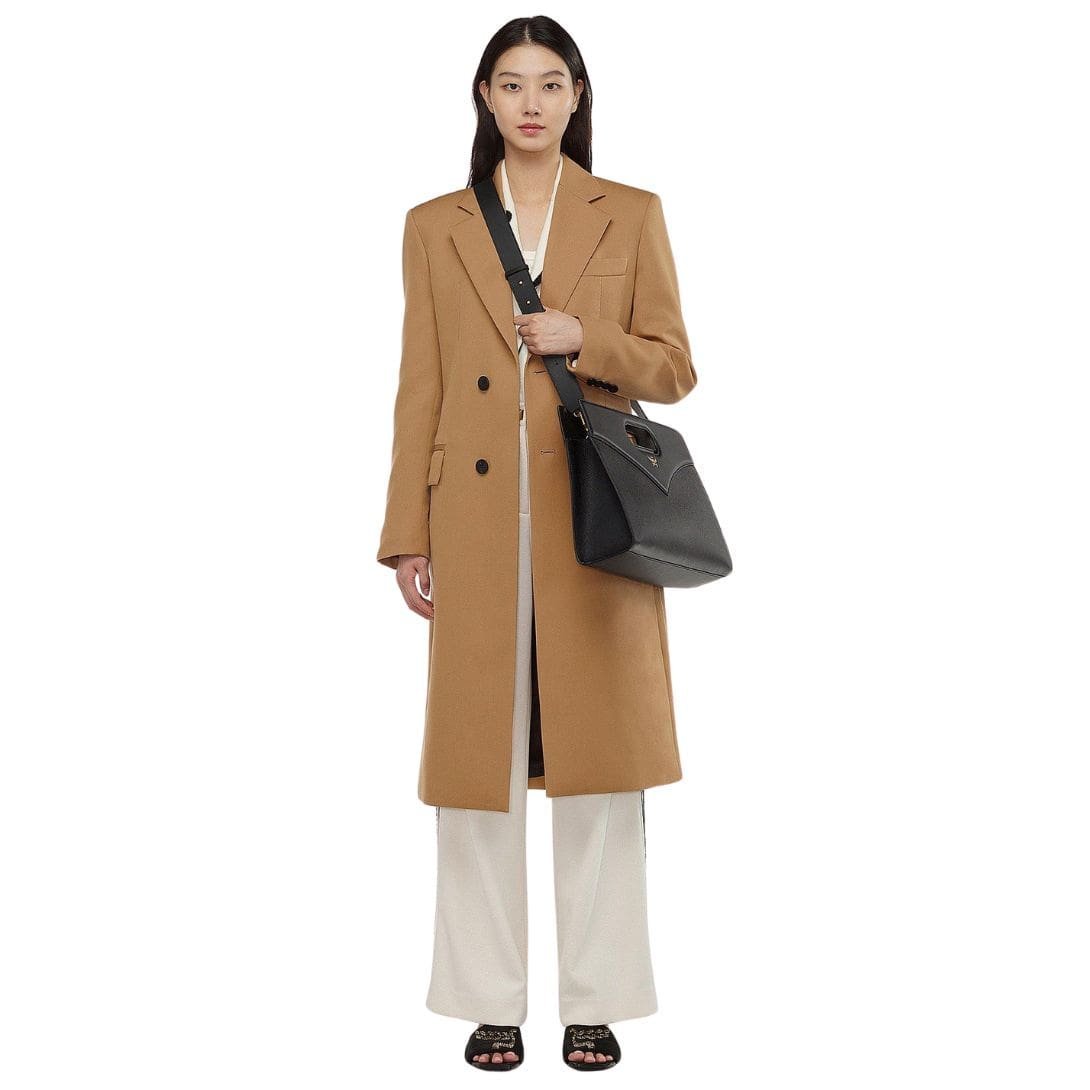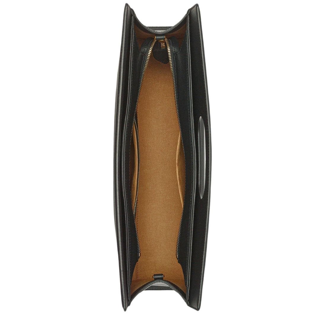 Trimmed with luxurious calf nappa leather and accented with 24k gold-plated brass hardware, this tote epitomizes luxury and refinement. The embossed leather body adds a touch of texture and sophistication, further elevating its allure.