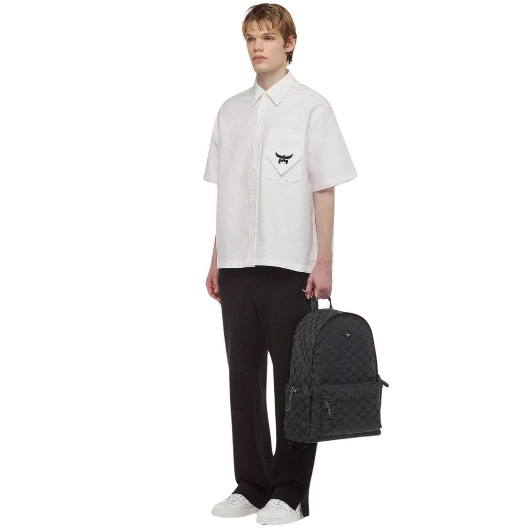 Introducing the latest addition to the Spring-Summer 2024 collection, the MCM Himmel Backpack In Lauretos Jacquard Grey embodies the essence of luxury and functionality, elevated by the prestigious symbolism of the Lauretos monogram. Crafted with meticulous attention to detail, this portable companion is a true masterpiece that combines exquisite design with practical features, making it the perfect accessory for the modern individual on the go.