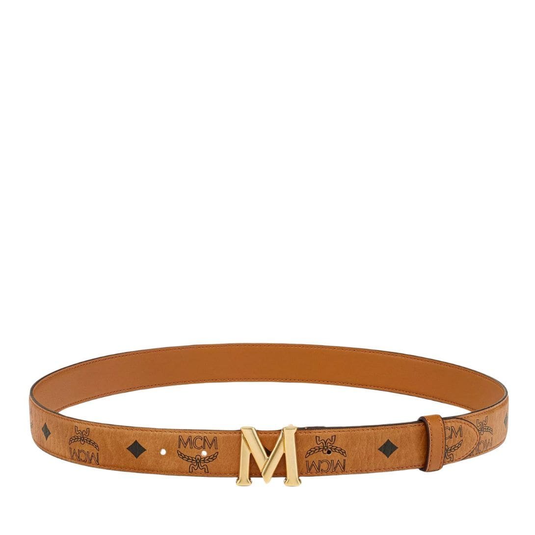 MCM HIMMEL BRASS PLATE REVERSIBLE MONOGRAM BELT COGNAC