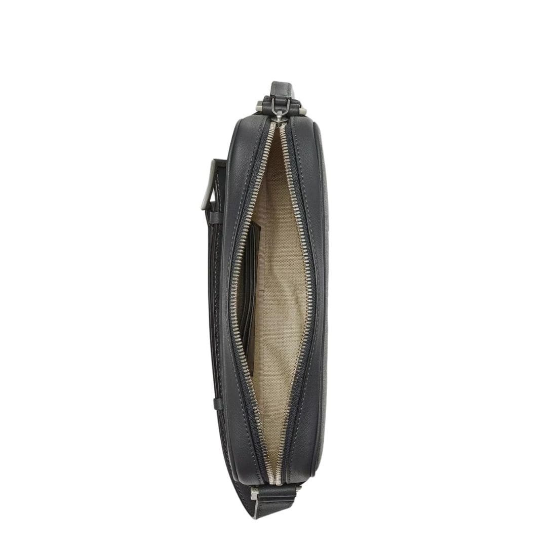 The adjustable leather crossbody strap offers versatility and comfort, with a generous length range of 48 to 57.5 inches to suit your individual needs. Antique silver-tone metal hardware adds a touch of sophistication to the bag’s overall aesthetic, lending a subtle yet striking contrast to the canvas and leather materials.