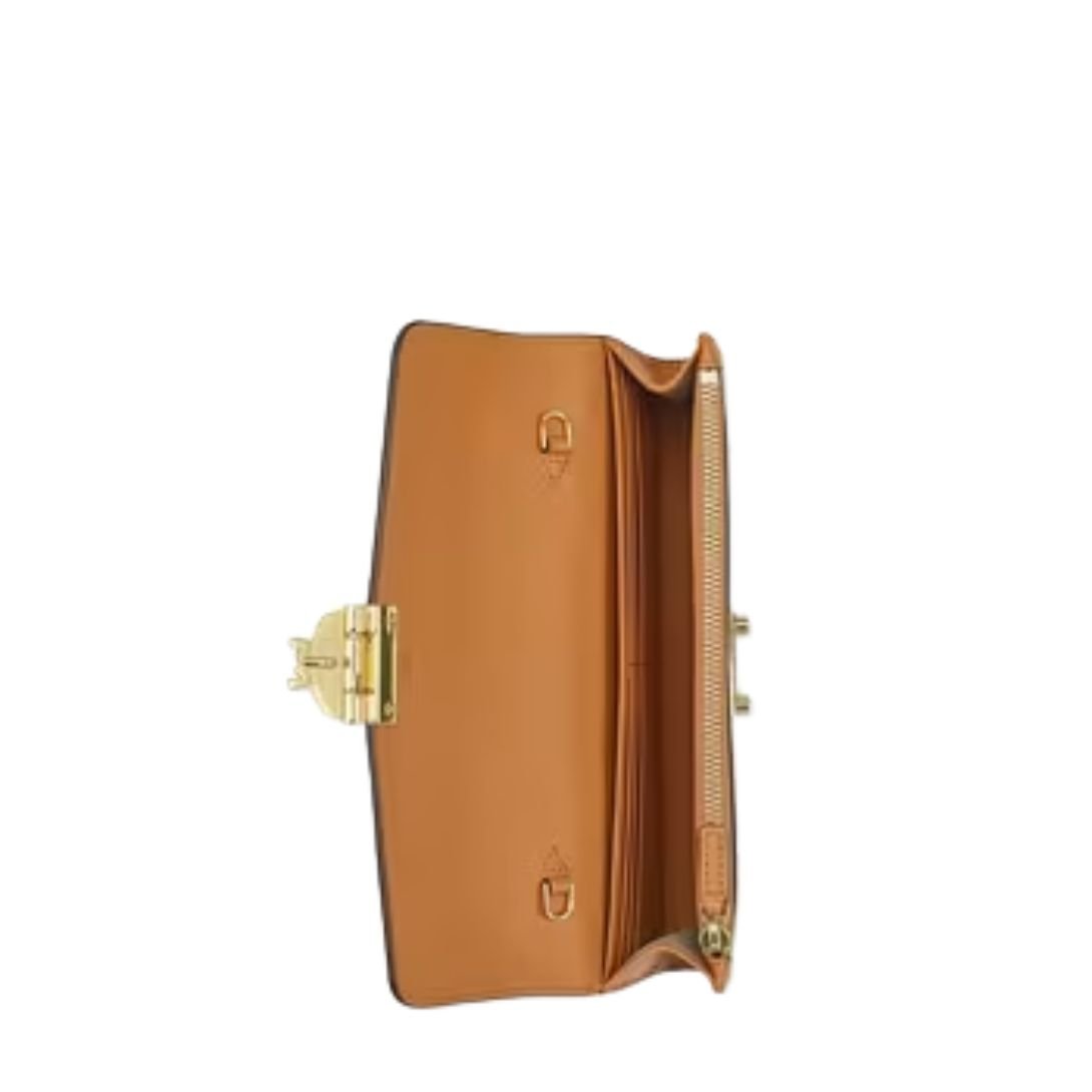 Secured by MCM’s signature 24k gold-plated Laurel Lock, this wallet opens to reveal a thoughtfully organized interior, designed to hold essentials in sophisticated style. Whether worn crossbody with the detachable chain strap or carried as a clutch, the Tracy chain wallet adapts to your day-to-night transitions effortlessly.