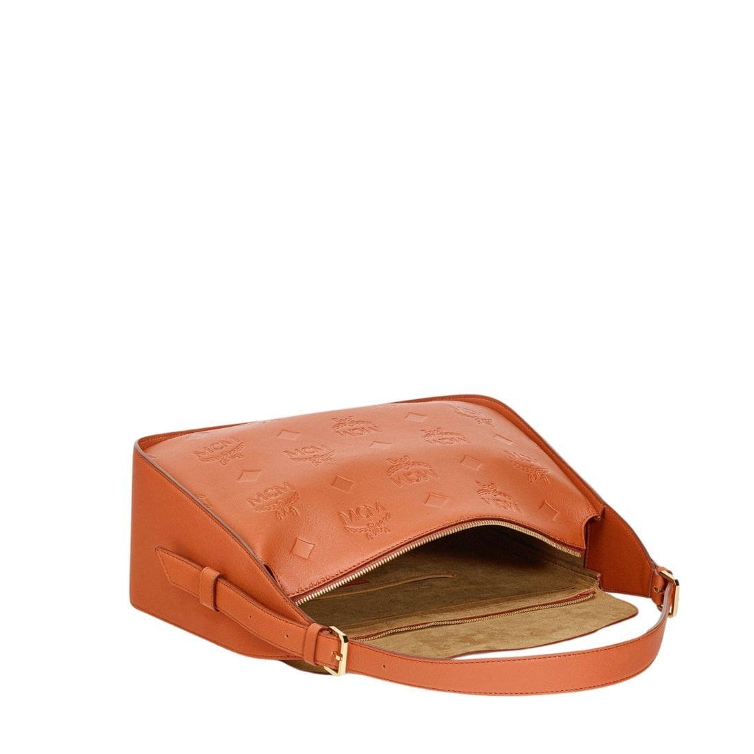 MCM MEDIUM AREN FLAP HOBO IN EMBOSSED MONOGRAM LEATHER BROWN