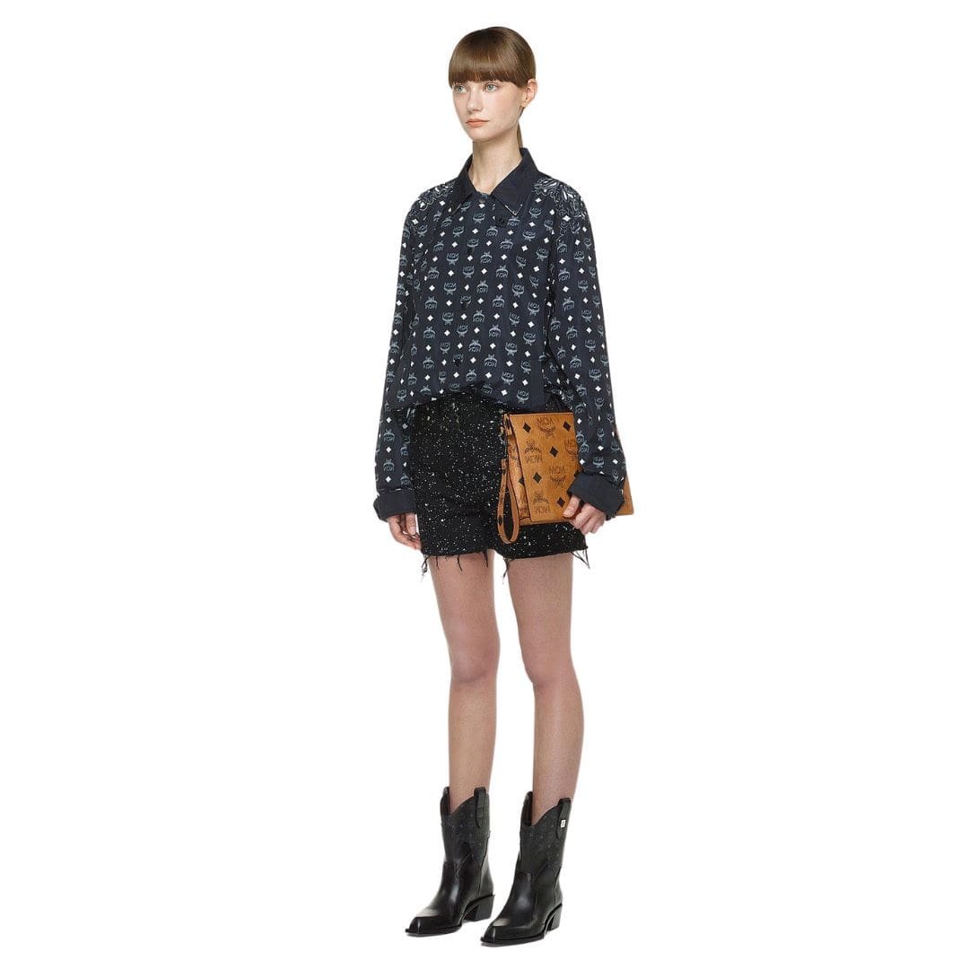 At the heart of the design lies the Visetos monogram canvas, a symbol of MCM’s rich heritage and enduring legacy. Classic motifs such as letters, laurels, and diamonds are boldly emblazoned across the canvas, creating a visual spectacle that captivates the senses and showcases the brand’s maximalist aesthetic.