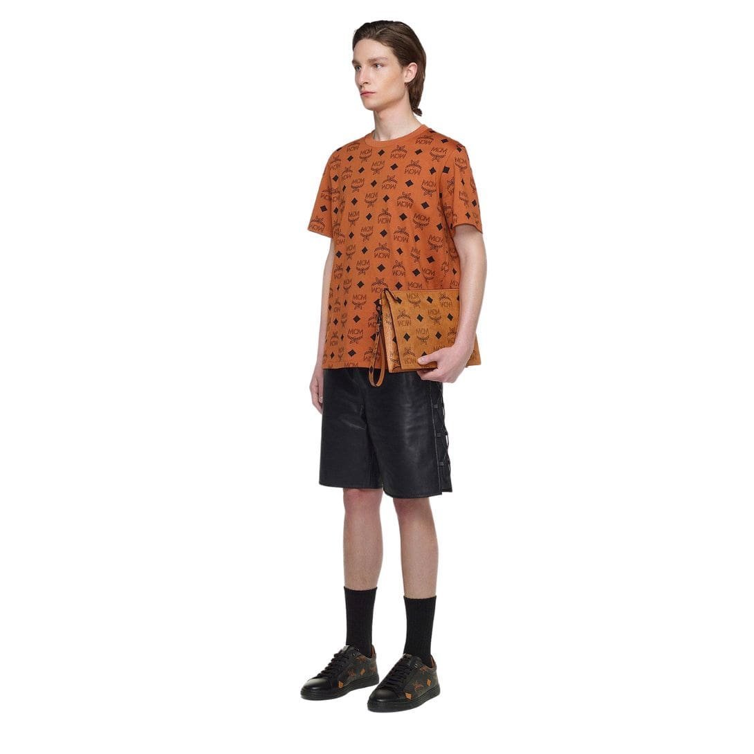 Embrace the bold essence of MCM maximalism with the MCM Medium Aren Wristlet Zip Pouch In Maxi Visetos Cognac, a striking statement piece that amplifies classic motifs to grand proportions. Magnifying the iconic elements of MCM’s heritage, including classic letters, laurels, and diamonds, this pouch exudes an aura of opulence and extravagance on a grand scale.