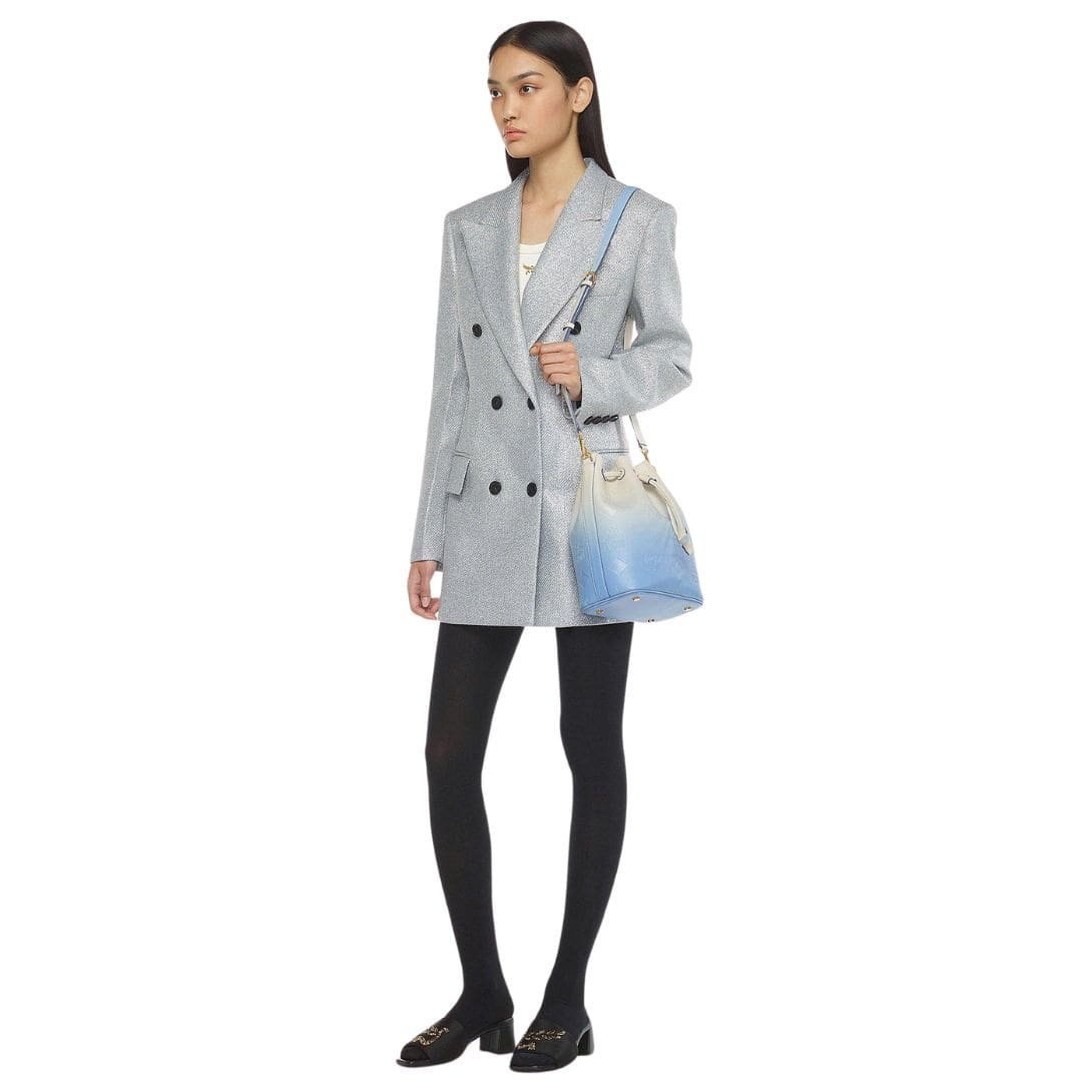 Elevating the concept of luxury to new heights, this MCM Medium Dessau Drawstring bag In Gradation Monogram Leather Blue is a testament to sophistication and refinement, drawing inspiration from the serene tones of the sky. A mesmerizing gradient of ethereal hues cascades across the natural Nappa leather, creating a visual symphony that captivates the senses. Embossed with the Maxi monogram, an emblem of timeless elegance, the bag exudes an air of exclusivity and prestige, elevating any ensemble with its understated yet opulent charm.