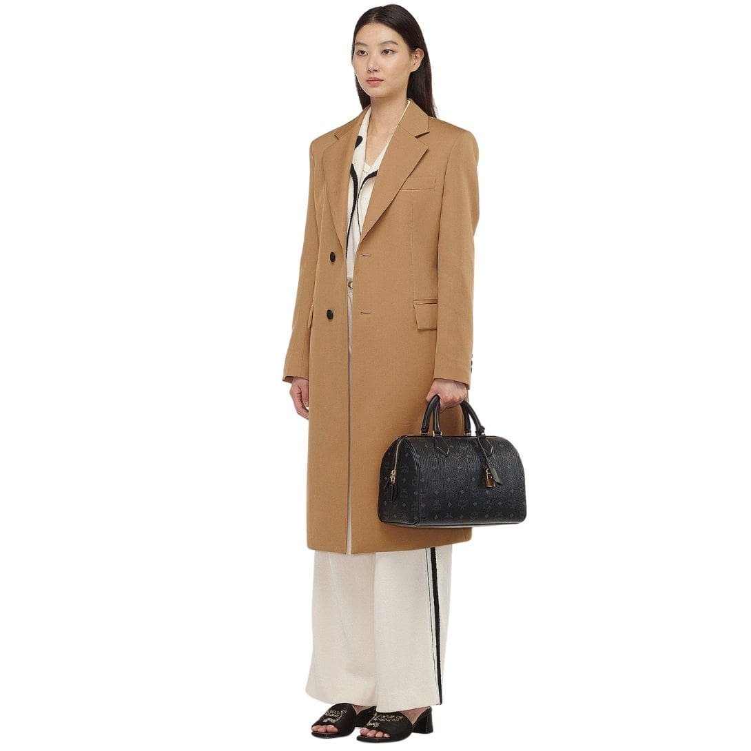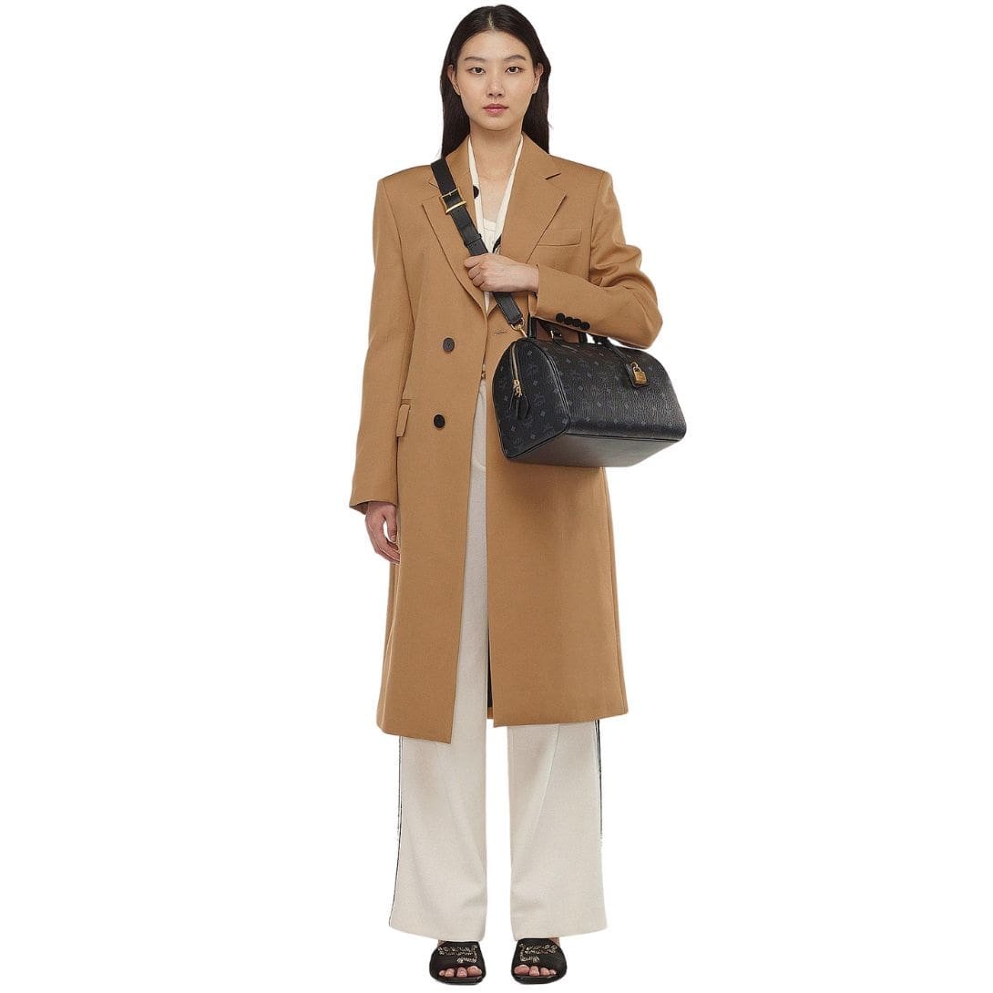 The MCM Medium Ella Boston Bag In Visetos Black epitomizes elegance and functionality, harkening back to the opulent era of Munich’s Golden Age. Inspired by the sophistication of vintage travel trunks, this carryall boasts exquisite details that nod to its jet-setting heritage.