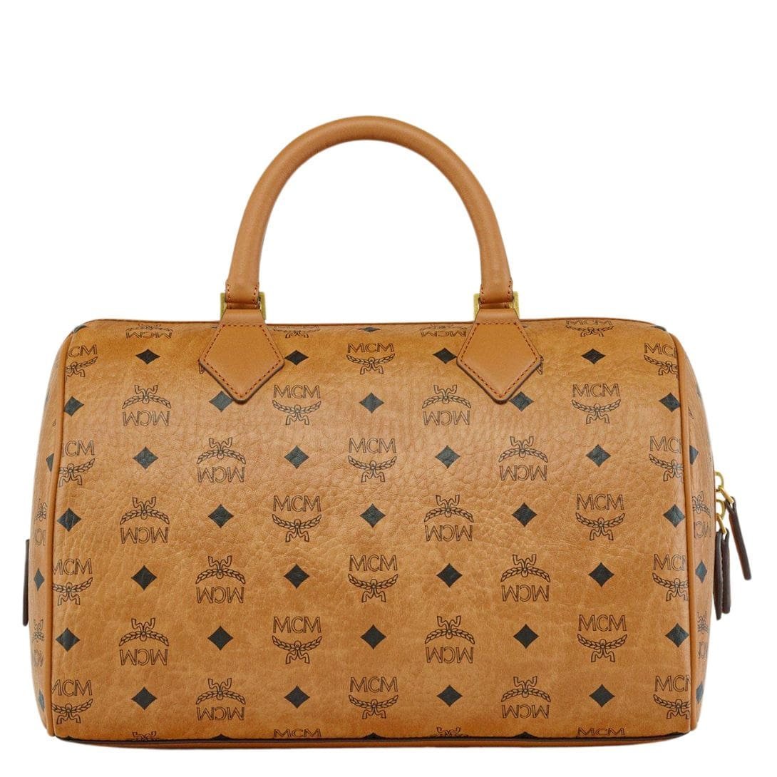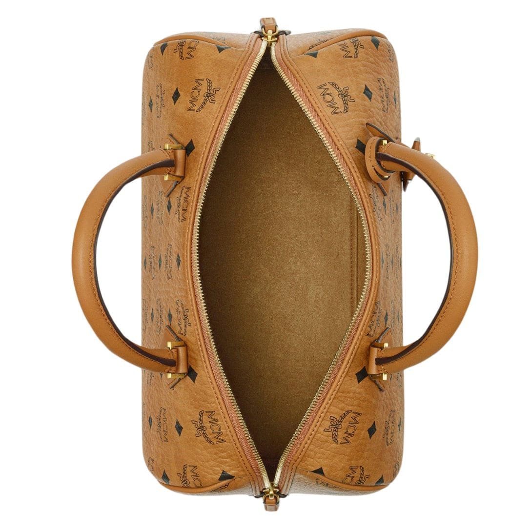 Transport yourself to the Golden Age of Munich with MCM Medium Ella Boston bag In Visetos Cognac, a quintessential carryall infused with timeless elegance. Inspired by the travel trunks of yesteryears, this bag pays homage to its jet-setting heritage through meticulous details and exquisite craftsmanship.