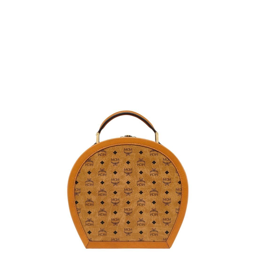 MCM MEDIUM HAT BOX IN VISETOS COGNAC