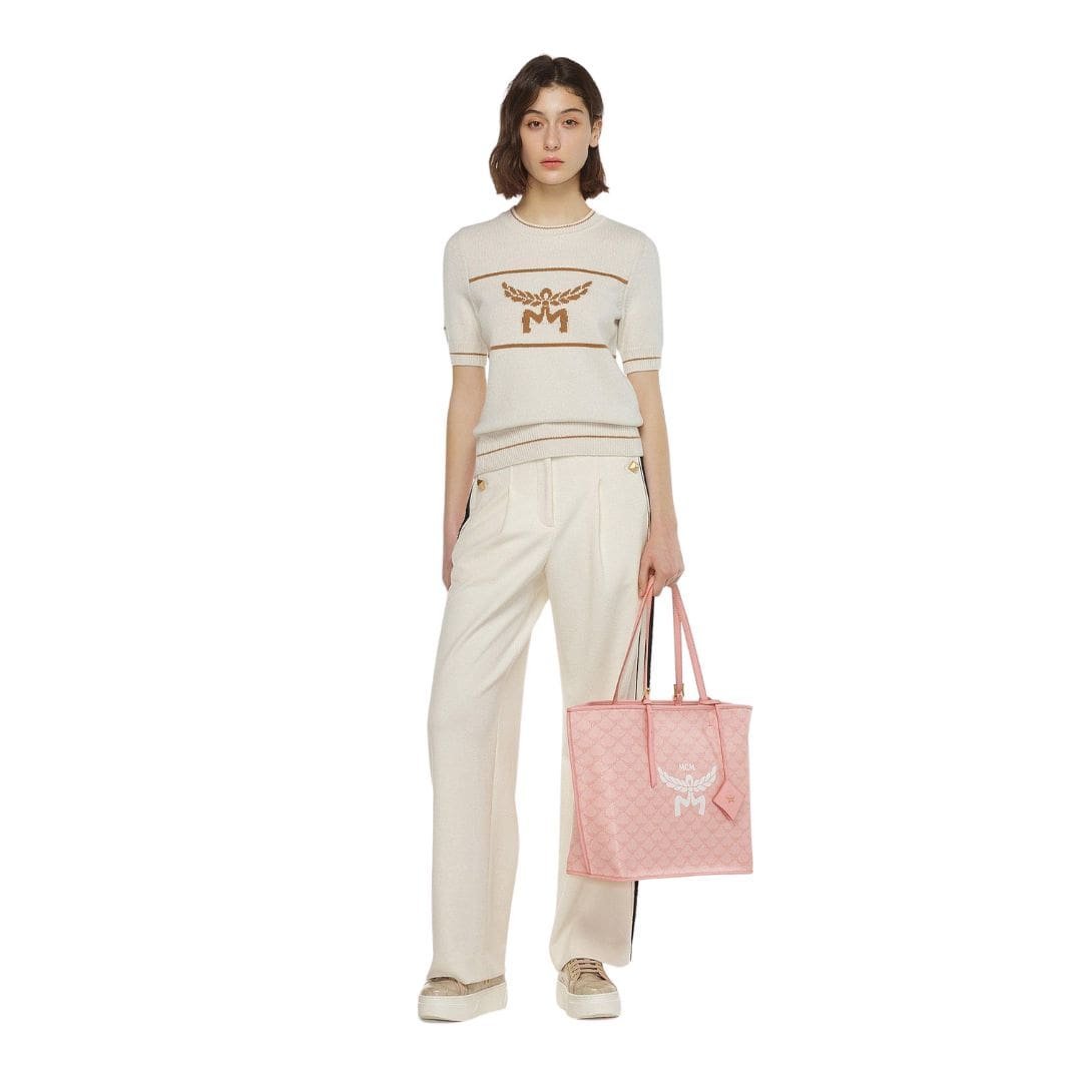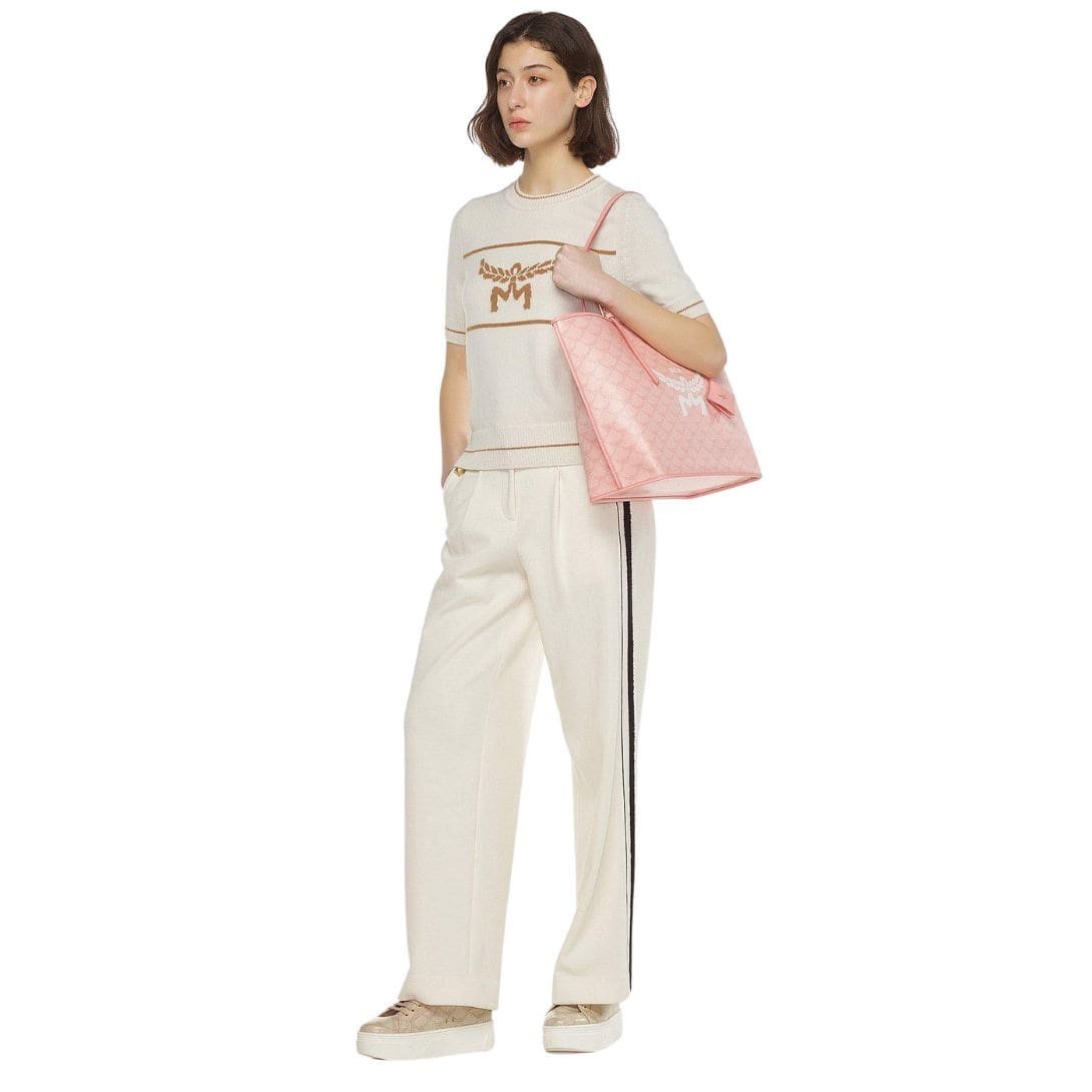 Exemplifying the pinnacle of MCM craftsmanship, this MCM Medium Himmel Shopper In Lauretos Pink is a testament to the brand’s dedication to luxury and heritage. Atop its silhouette, the noble laurel leaves intertwine to form the illustrious Lauretos monogram, a symbol of prestige and sophistication. This iconic emblem, steeped in tradition, speaks volumes about the bag’s distinguished lineage and unrivalled quality.