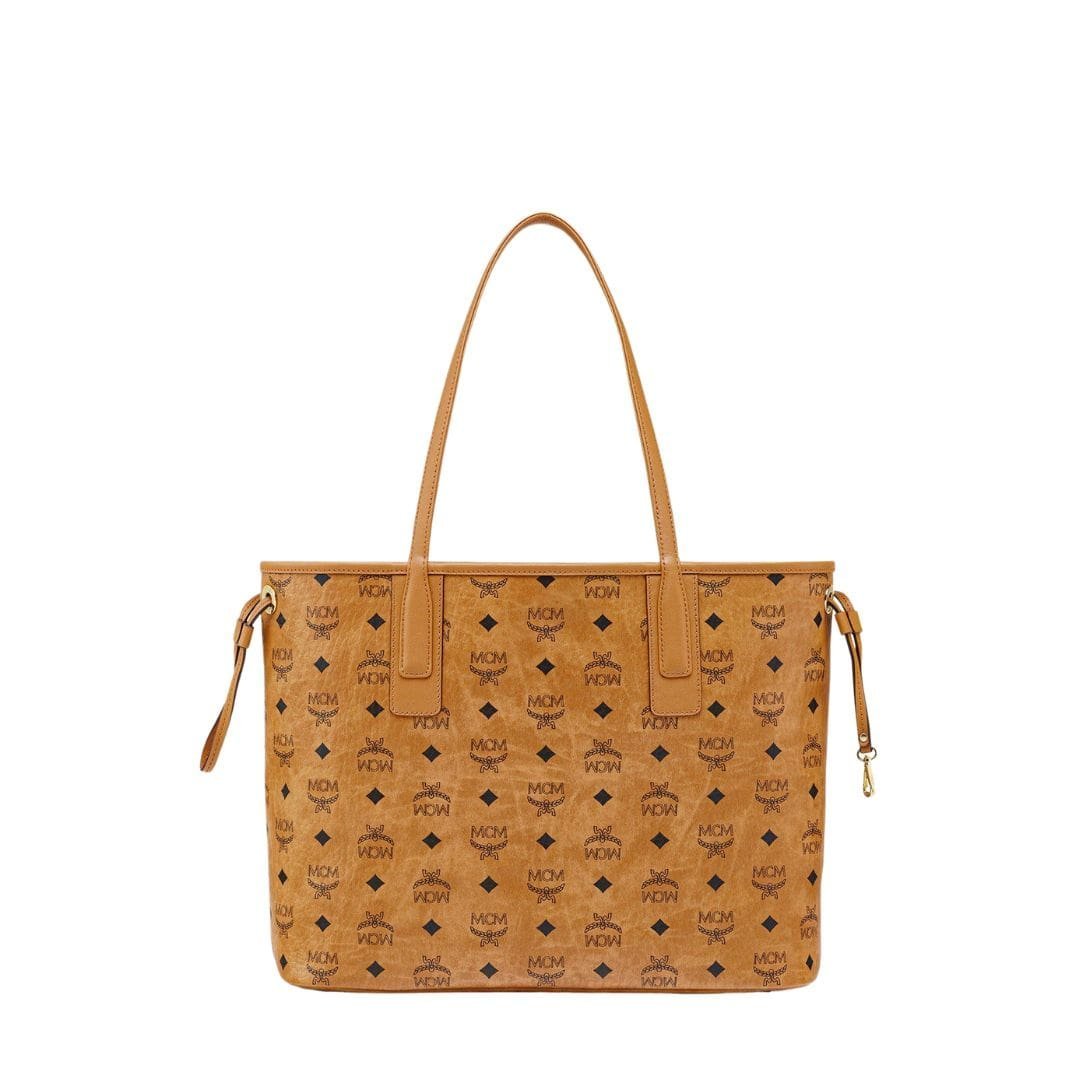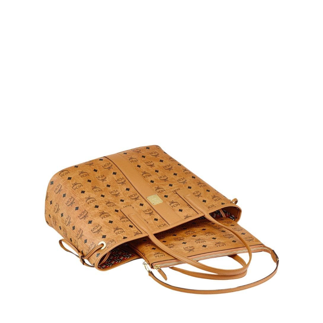 MCM MEDIUM REVERSIBLE LIZ SHOPPER IN VISETOS COGNAC