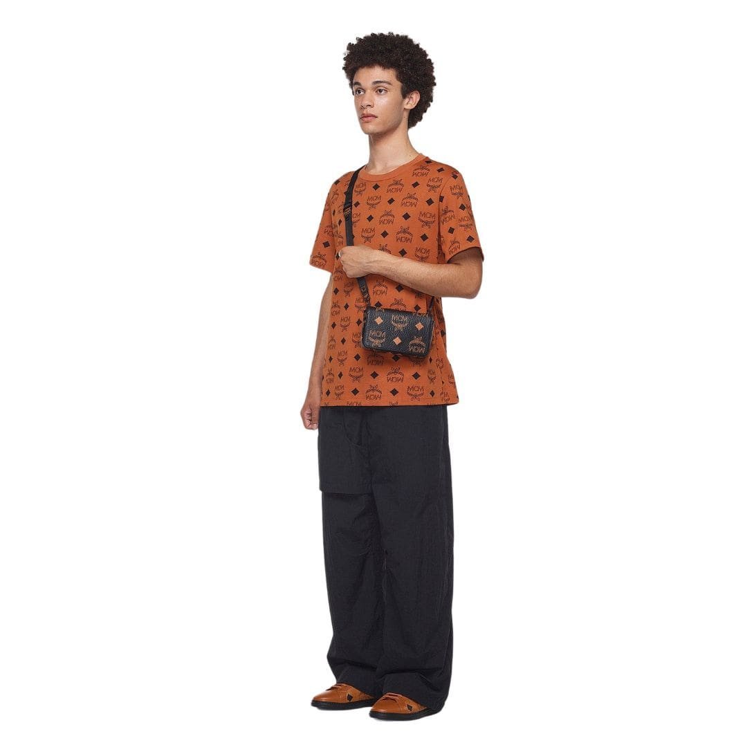 Embracing the essence of MCM maximalism, this exquisite MCM Mini Aren Camera Bag In Maxi Visetos Black stands as a testament to the brand’s rich heritage and timeless allure. Its design resonates with a harmonious fusion of classic elements—letters, laurels, and diamonds—artfully magnified to create a bold and captivating statement piece. Crafted with meticulous attention to detail, every aspect of this accessory exudes luxury and sophistication.