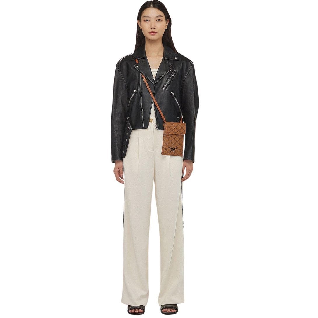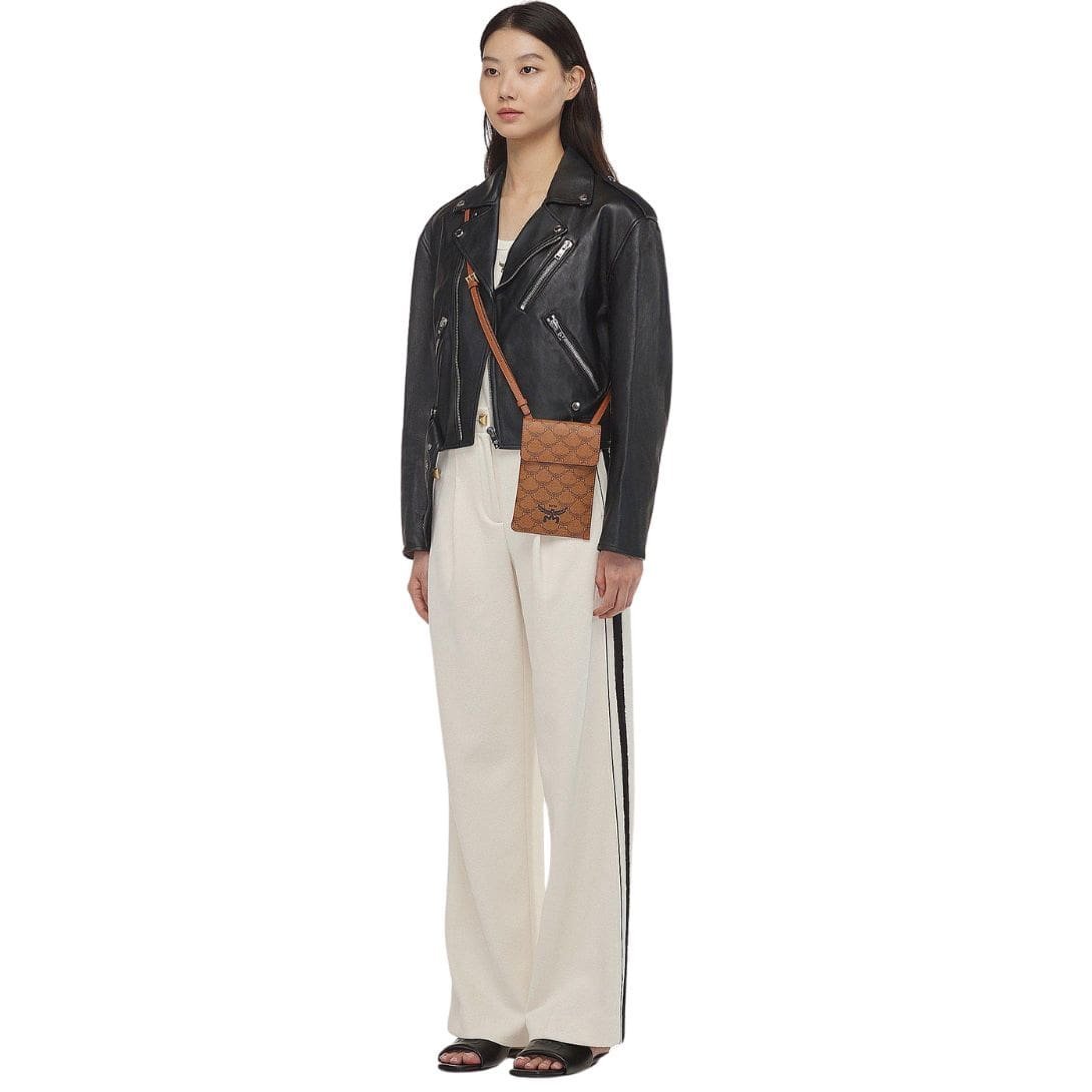 Embrace the timeless charm of the Lauretos monogram canvas body, exuding an air of prestige and refinement. Complemented by the trim crafted from supple Nappa leather, this pouch boasts an understated elegance that effortlessly elevates any ensemble. The MCM logo motif further enhances its visual appeal, serving as a testament to its luxury heritage.