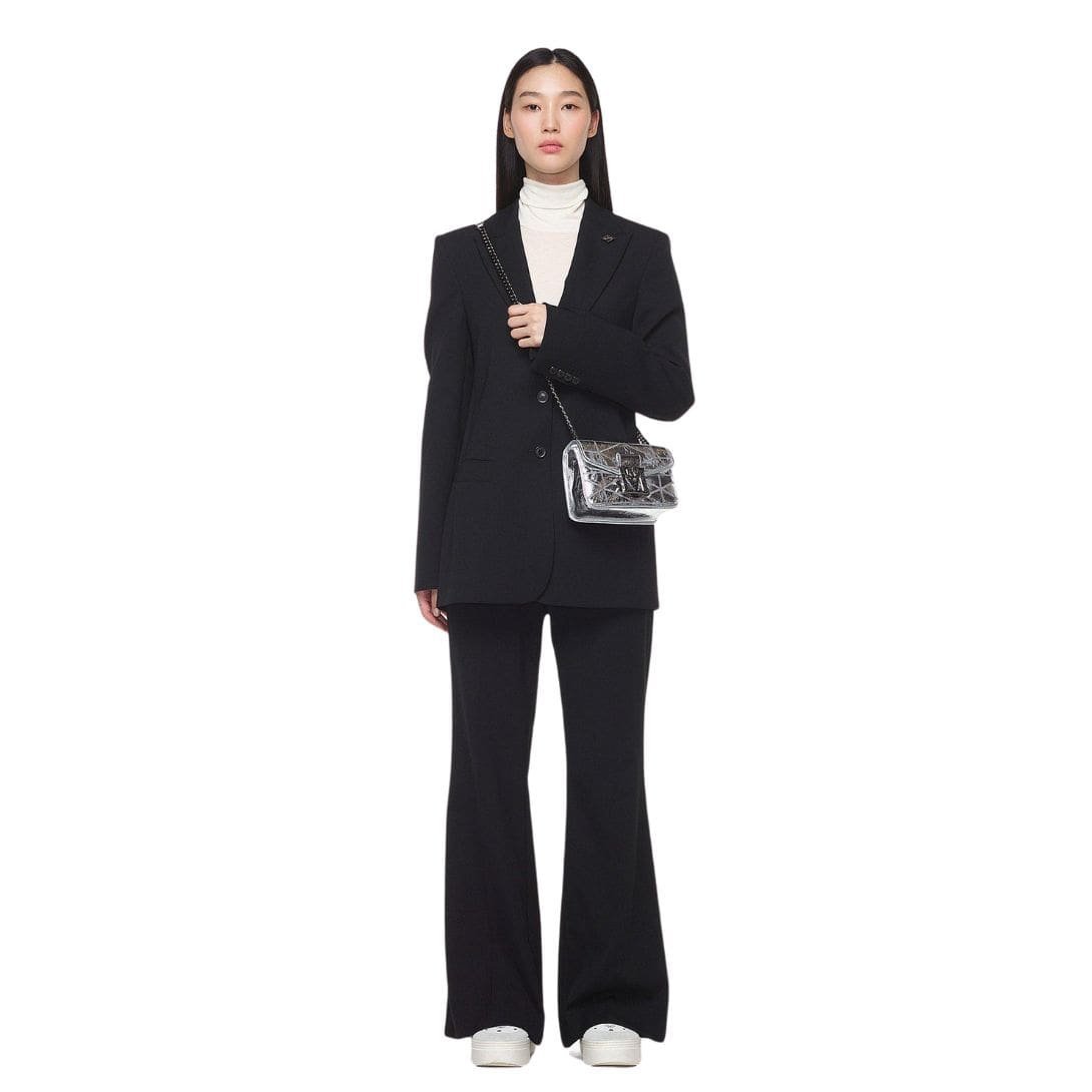 Measuring approximately 2.8 x 7.3 x 5.1 inches, this compact yet spacious bag offers ample room for your essentials while maintaining a sleek and streamlined profile. The black satin metal chain strap, with a generous drop length of 21.5 inches, adds a touch of sophistication to the design while ensuring comfortable wearability.