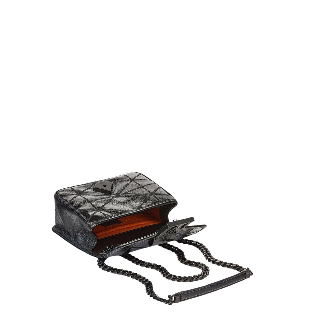 Crafted from crushed Italian leather, this shoulder bag boasts a unique texture and character that sets it apart. The matte black metal hardware adds a touch of sophistication to the bag’s overall aesthetic while reflecting the brand’s commitment to quality and craftsmanship.