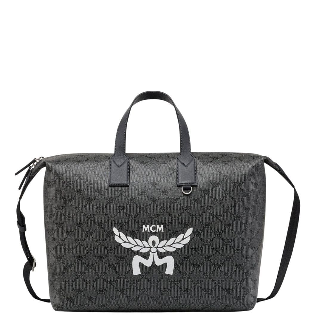 The two-way zip closure ensures convenient access to your belongings, while an exterior trolley sleeve at the back allows you to secure the bag to any MCM suitcase for added convenience during transit. Designed to fit in overhead bins when traveling, this Weekender bag is not intended for under-seat storage due to its length.