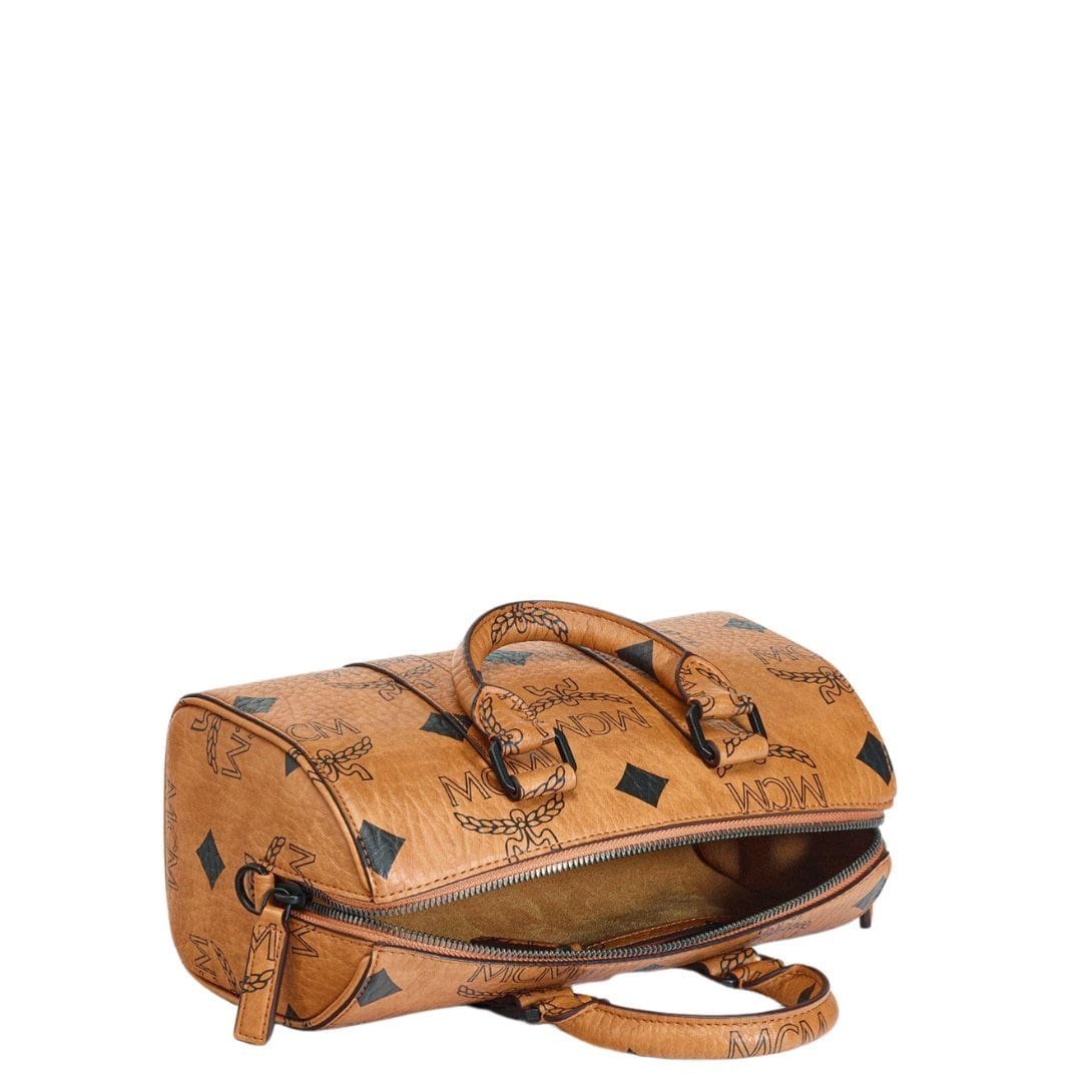 MCM SMALL AREN BOSTON BAG IN MAXI VISETOS COGNAC