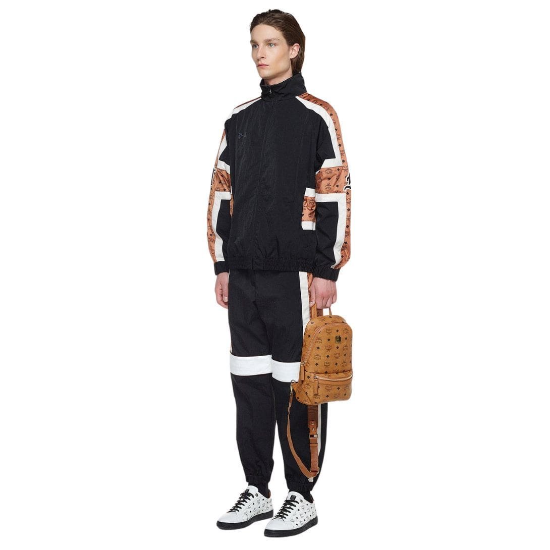 At approximately 3.2 x 7.9 x 11.8 inches, the compact size of the bag belies its functionality. The adjustable herringbone webbing strap, ranging from 31 to 40 inches, ensures a comfortable fit for wearers of various heights, while the leather top handle adds versatility to its carrying options. An elegant MCM logo plate adorns the front of the bag, subtly highlighting its luxury status.