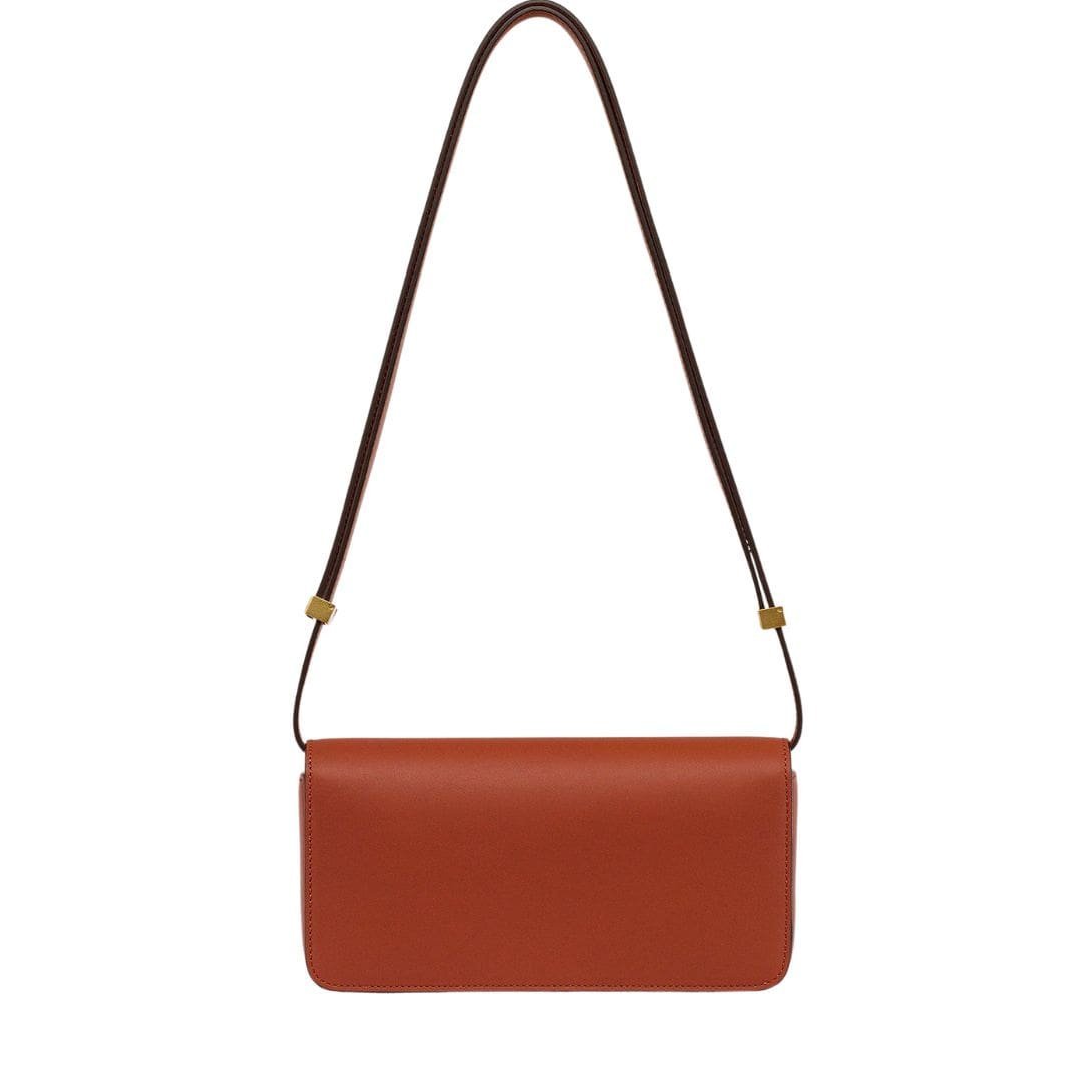 Inside, the bag is thoughtfully designed with interior card slots, providing convenient organization for essentials while maintaining a sleek and streamlined silhouette. The body of the bag is crafted from 100% Spanish calf leather, renowned for its quality and durability, ensuring both timeless style and long-lasting functionality.
