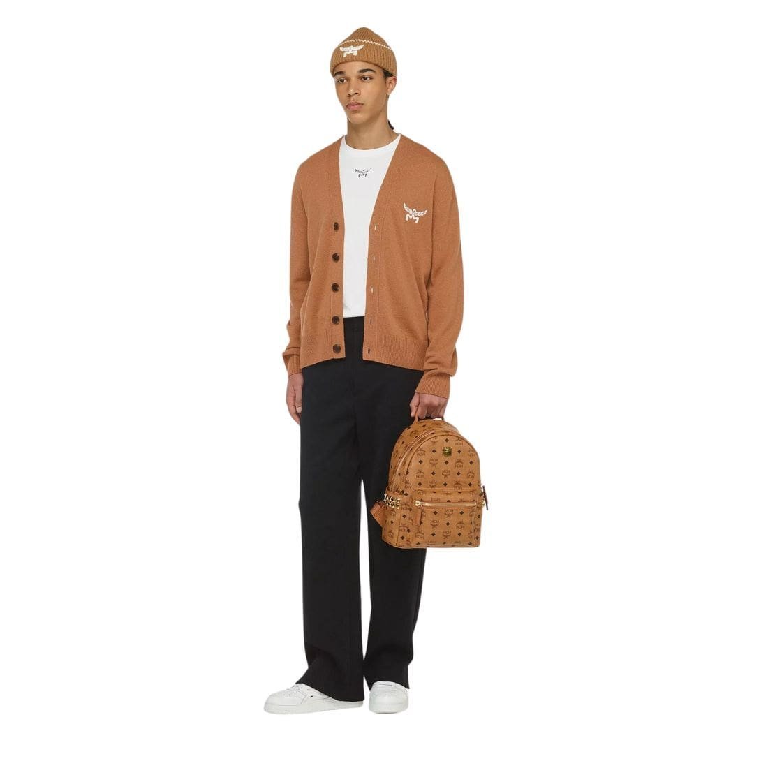 Experience the epitome of luxury and style MCM Small Stark Side Studs Backpack In Visetos Cognac. by MCM, meticulously crafted from the brand’s signature Italian Visetos adorned with smooth nappa leather accents in classic cognac. This exquisite backpack combines elegance with functionality, making it the perfect companion for the modern adventurer.