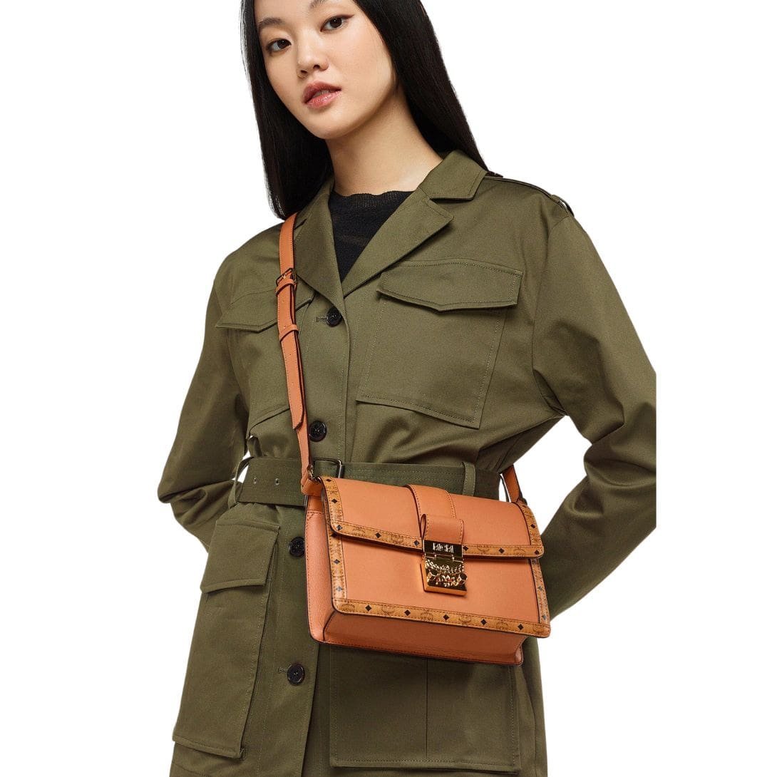 MCM SMALL TRACY SHOULDER BAG IN LEATHER VISETOS MIX COGNAC