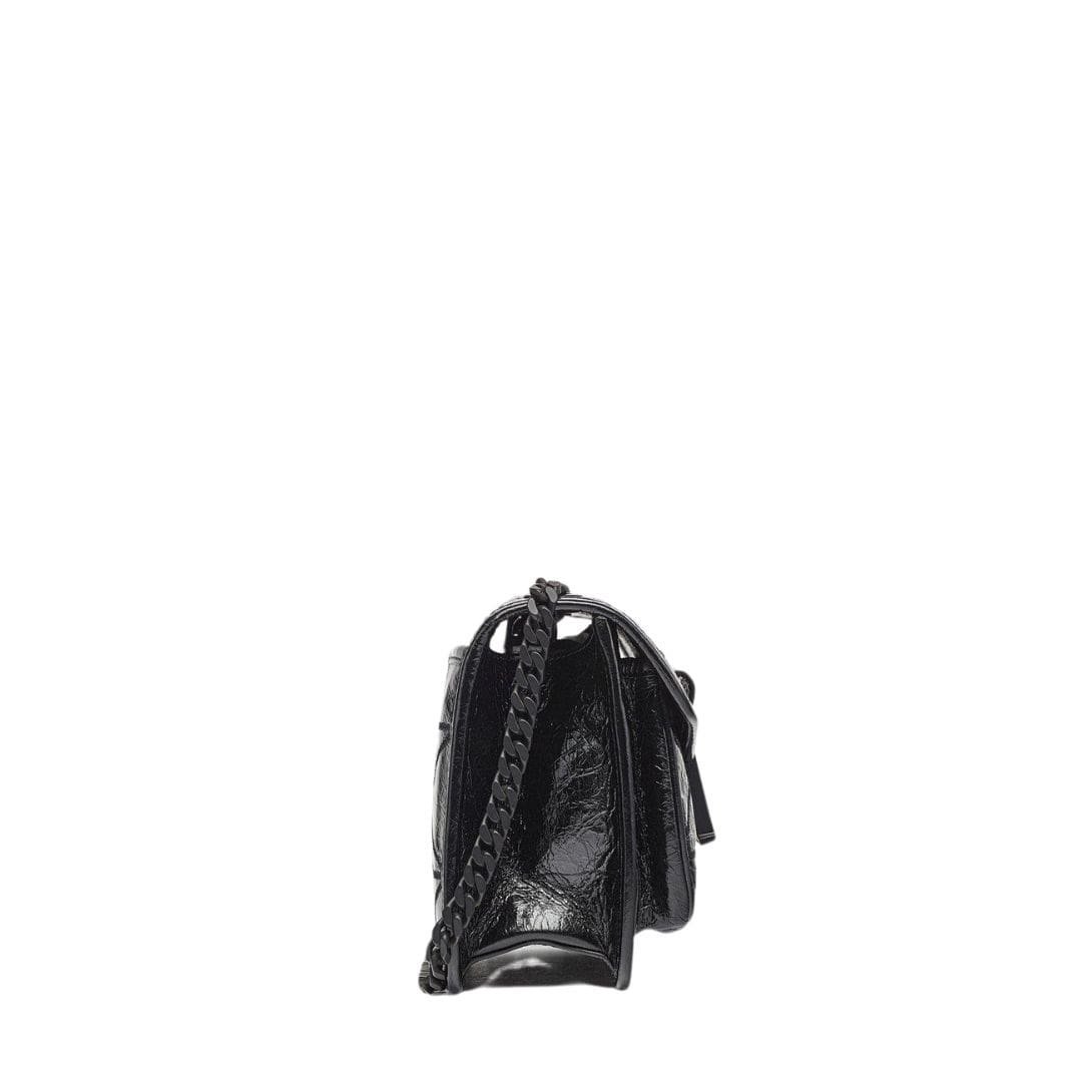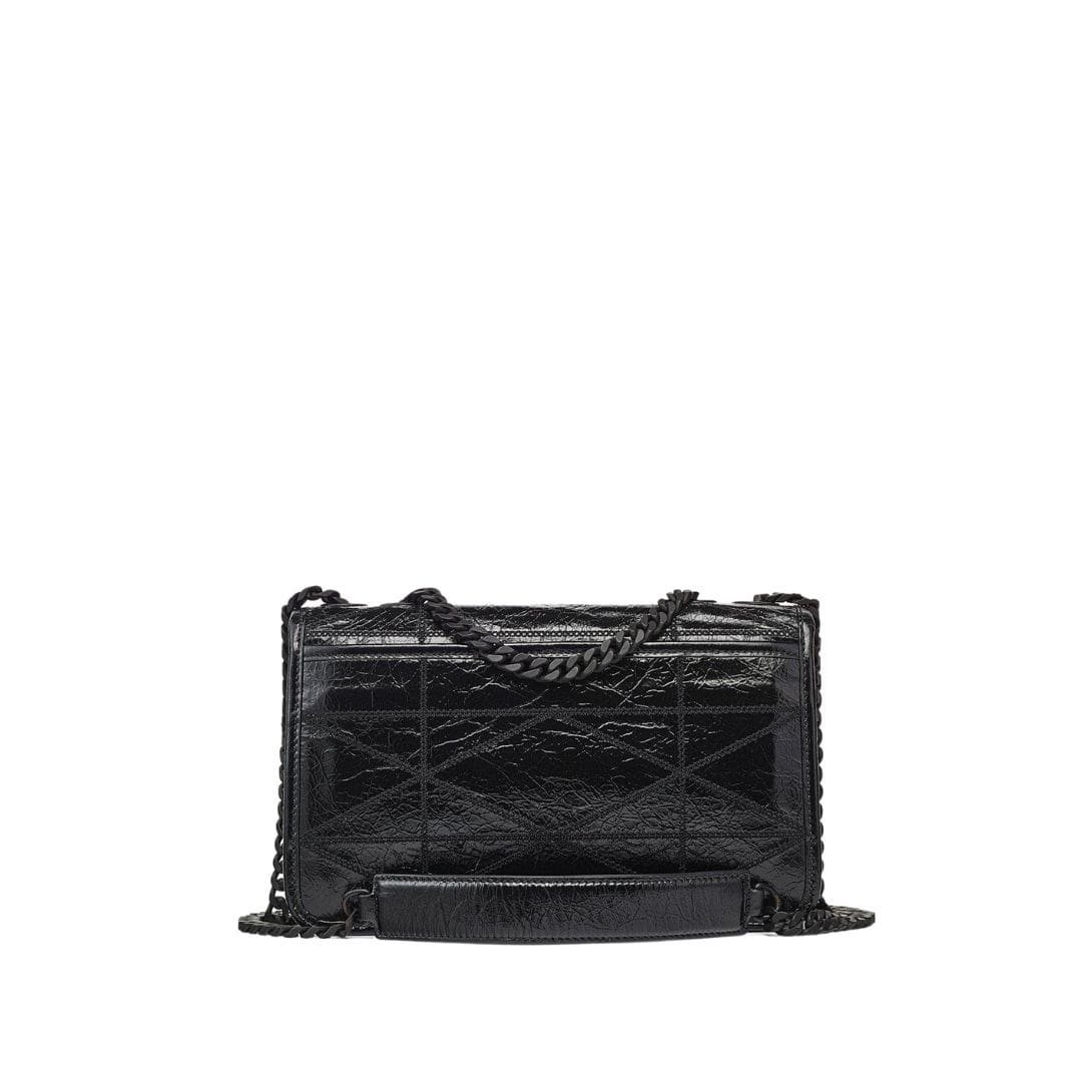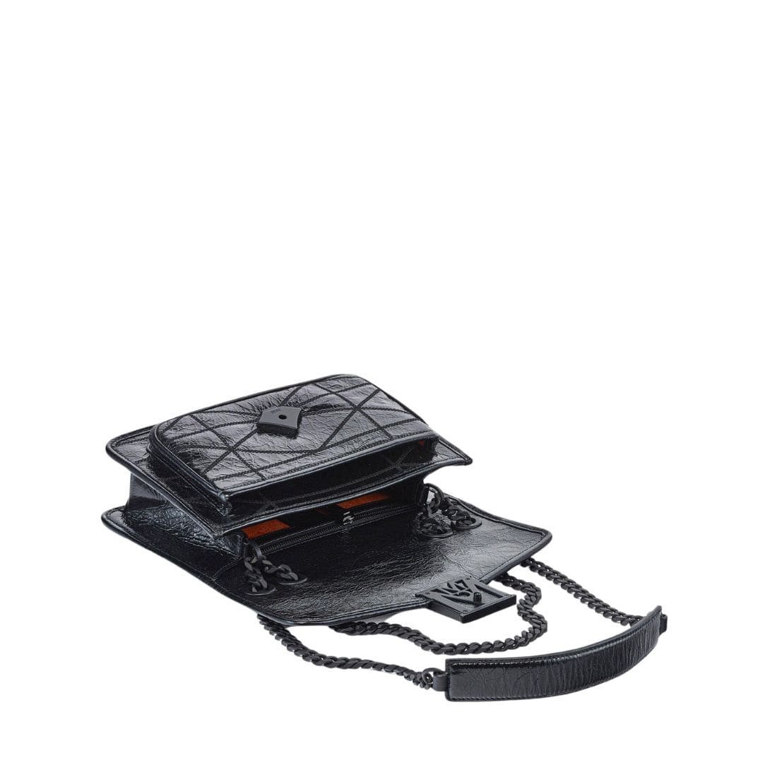 Crafted from crushed Italian leather, this shoulder bag boasts a unique texture and character that sets it apart. The matte black metal hardware adds a touch of sophistication to the bag’s overall aesthetic while reflecting the brand’s dedication to quality and craftsmanship.