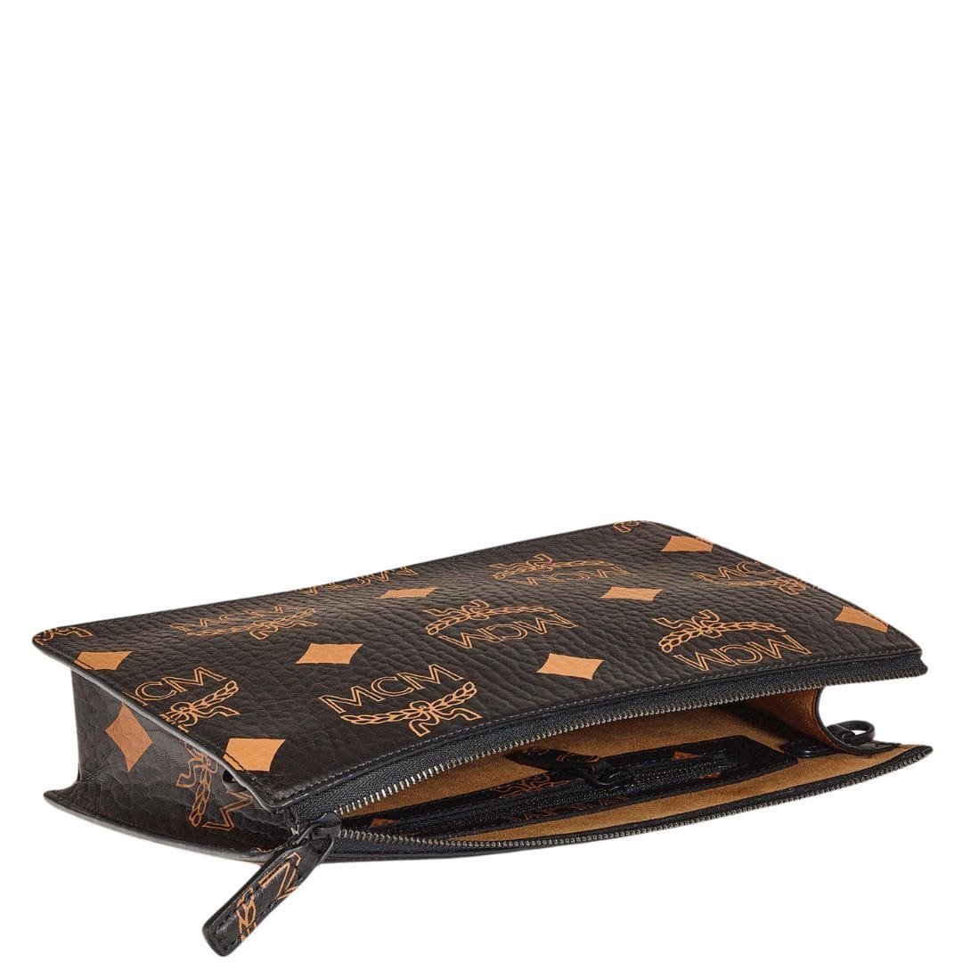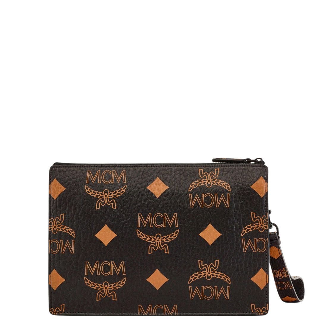 MCM SMALL WRISTLET ZIP POUCH W/ CHAIN STRAP IN MAXI VISETOS BLACK