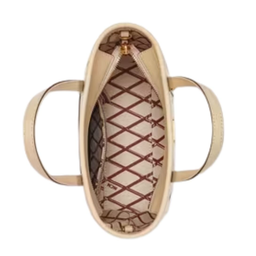 Equipped with nappa leather top handles and an adjustable crossbody strap (ranging from 38.5″ to 45″), the bag offers multiple styling options. Carry it by hand for a structured look or wear it crossbody for hands-free functionality. The handle drop of 4 inches ensures an elegant and comfortable grip.