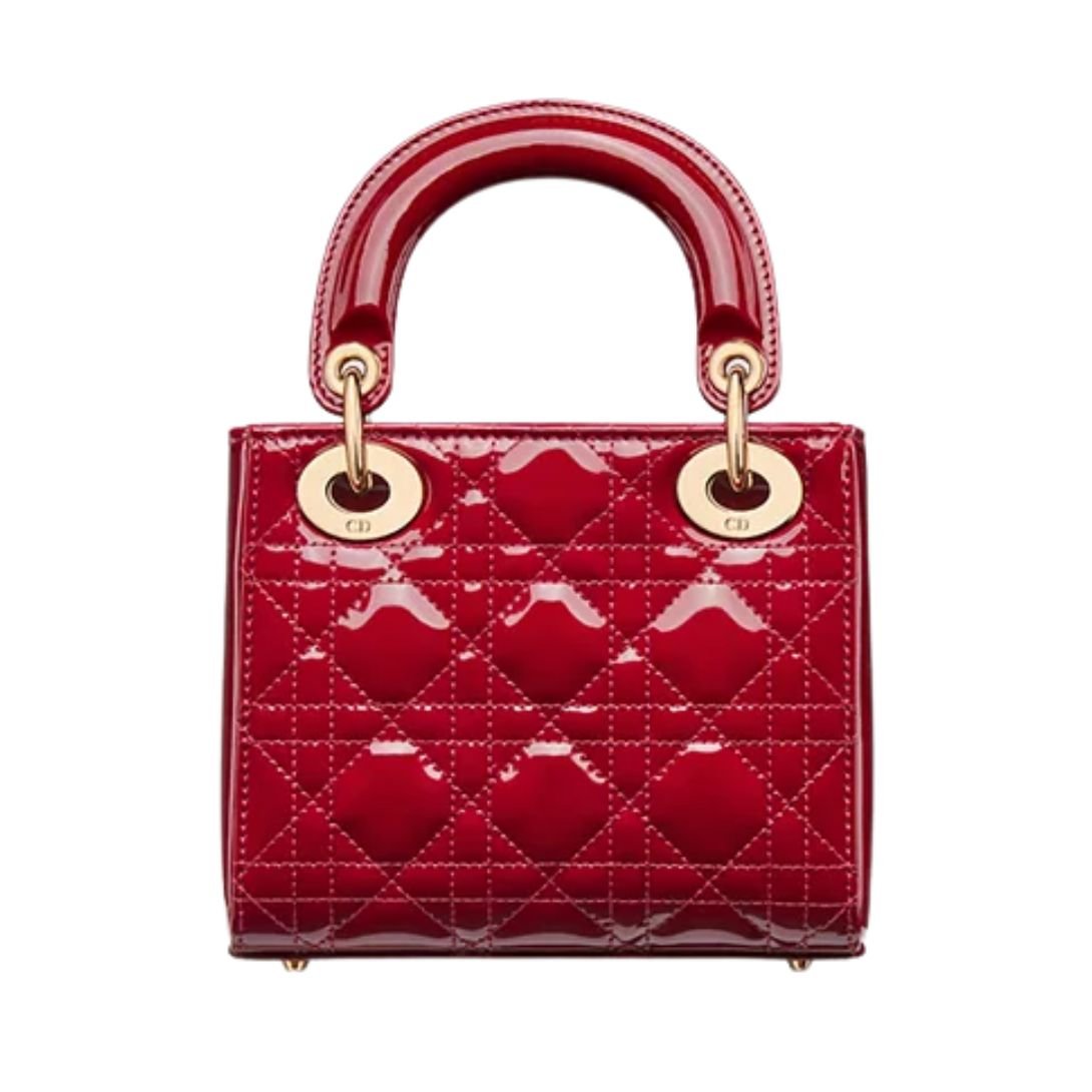 MINI DIOR BAG PATENT CANNAGE CALFSKIN WOMEN CHERRY RED