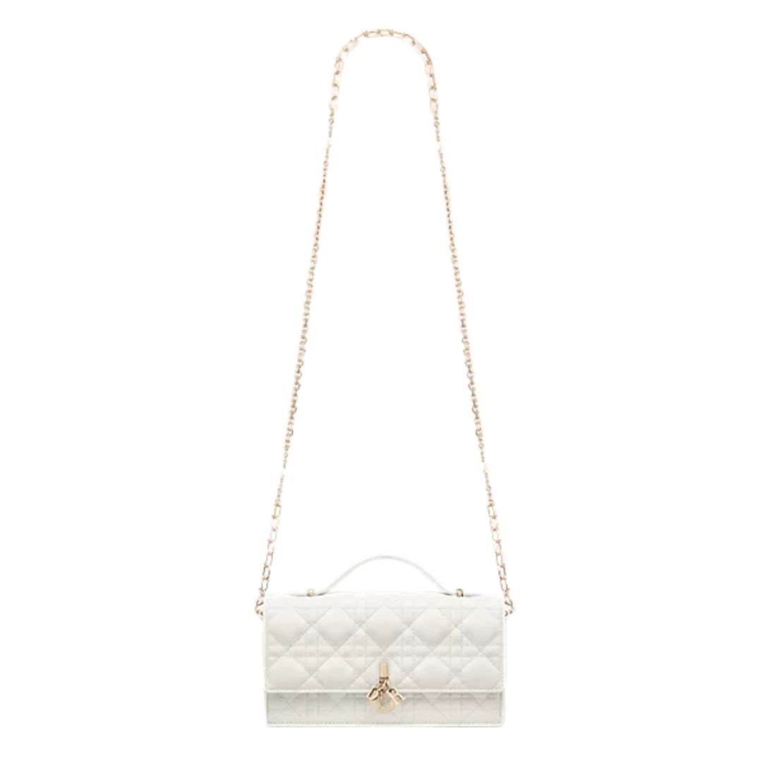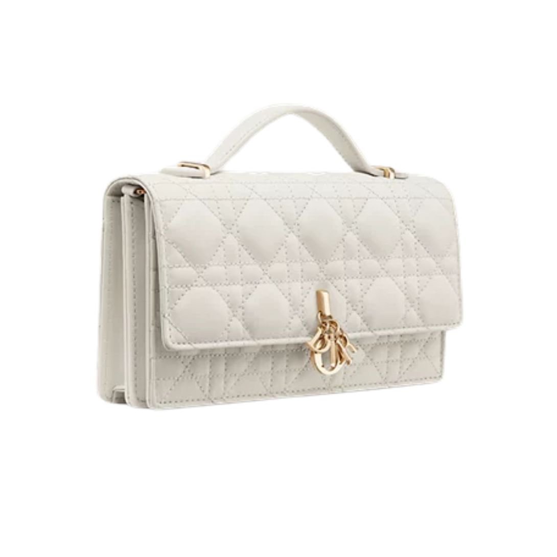 The My Dior Mini Bag is an elegant addition to the line, seamlessly combining refined aesthetics with practical functionality. Crafted in black Cannage lambskin, its sleek flap is adorned with pale gold-finish D.I.O.R. charms, adding a signature House touch. Designed to hold daily essentials, it features organized compartments and three card slots, making it ideal for both daywear and evening occasions.