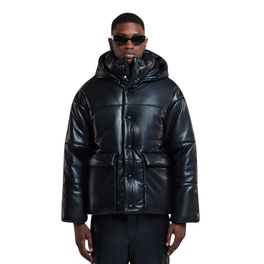 Despite this evolution in material, the signature features that define the Hide jacket remain intact, serving as enduring symbols of Nanushka’s distinctive aesthetic. The high neck, a quintessential element of the design, not only provides added warmth and protection but also adds a touch of contemporary sophistication to the silhouette. This thoughtful detail ensures both practicality and style, making the jacket a versatile companion for any occasion.