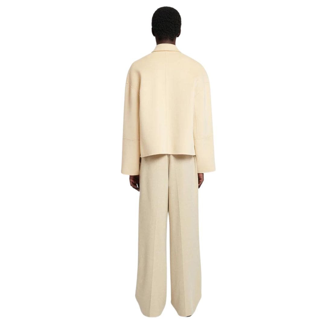 NANUSHKA MARCIN DOUBLE WOOL AND SILK BLEND JACKET CREME stands as a quintessential wardrobe cornerstone, epitomizing the brand’s fusion of refined tailoring and luxurious fabrics. Crafted from a double blend of wool and silk, this jacket exudes understated elegance and timeless sophistication, making it a versatile addition to any wardrobe.
