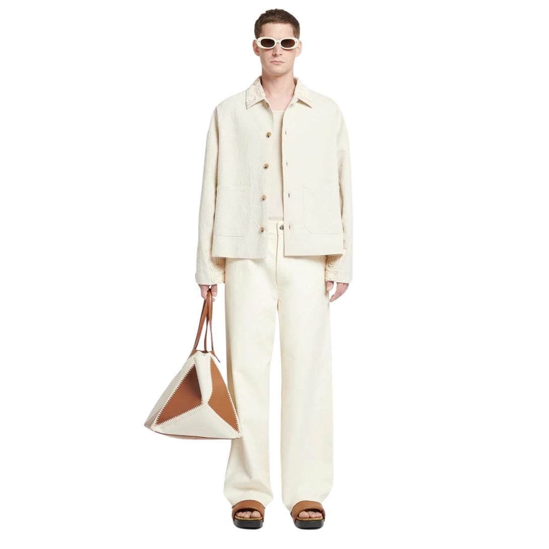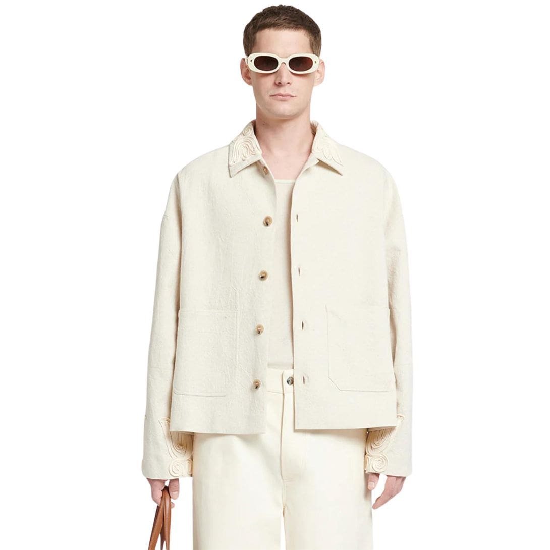 NANUSHKA MILLER EMBROIDERED WASHED CANVAS JACKET NUDE stands as a testament to the brand’s dedication to embracing new heritage while redefining contemporary style. Intricately embroidered with traditional Hungarian kopjafa motifs, this jacket seamlessly blends cultural heritage with modern aesthetics, making it a standout piece in any wardrobe.