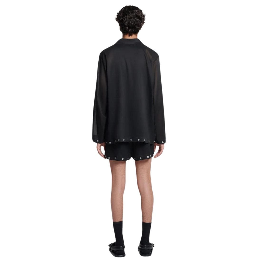 Indulge in contemporary elegance with NANUSHKA TALLON STUDDED ORGANZA BERMUDA SHORTS BLACK, meticulously crafted from luxurious organza fabric to exude sophistication with a modern twist. These Bermuda shorts boast a baggy fit distinguished by silver studs, adding an edgy flair to their refined silhouette.