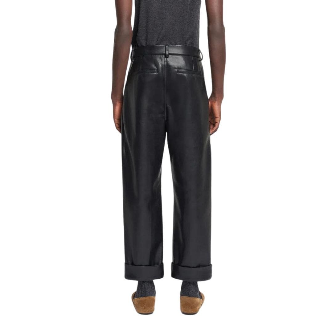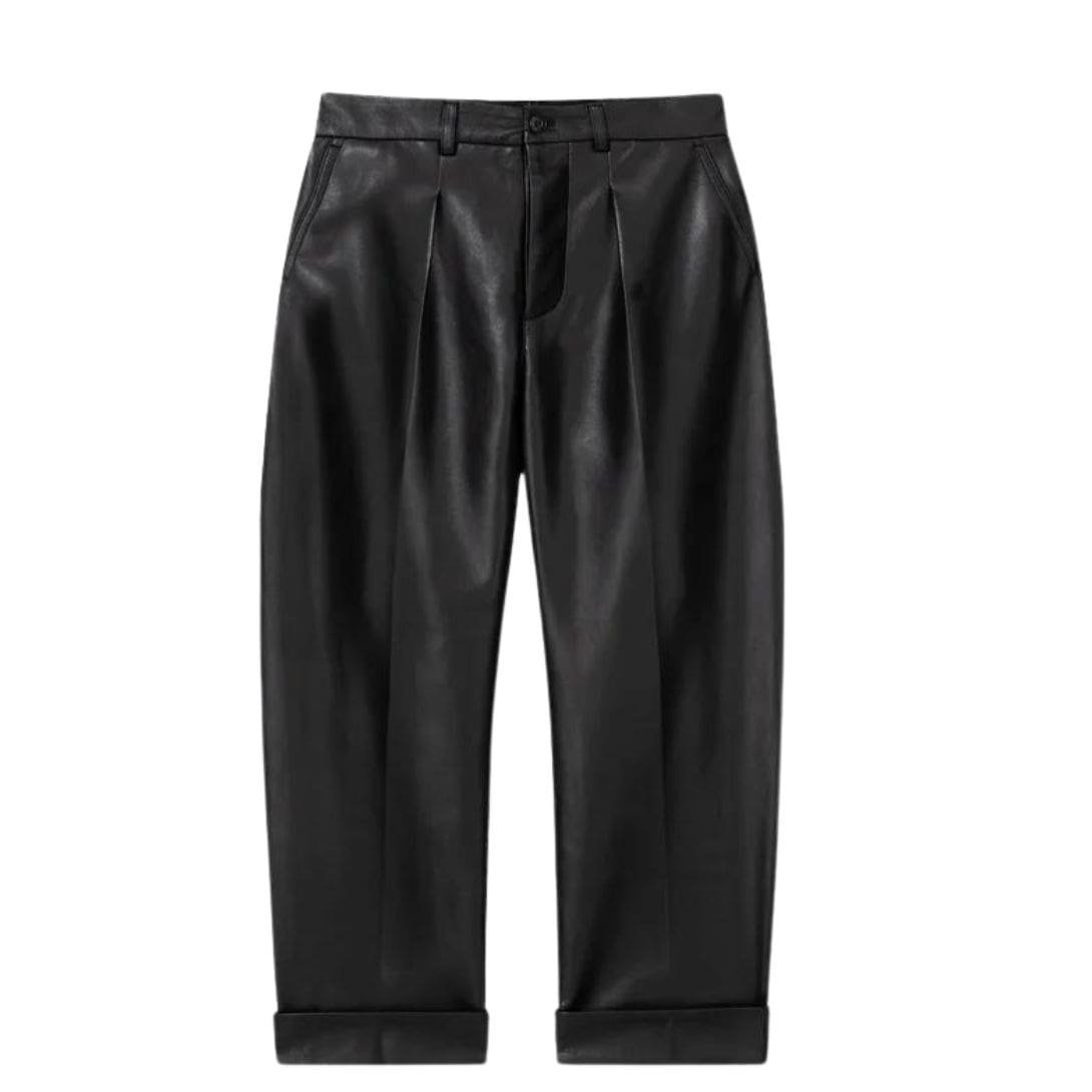 In summary, the Nanushka Zayden Regenerated Leather Tapered Pants epitomize modern elegance with their sustainable craftsmanship and sophisticated design. From the signature regenerated leather construction to the tapered barrel legs accentuated by pressed creases and turn-up hems, every detail of these pants reflects Nanushka’s dedication to creating timeless pieces that empower both the wearer and the planet. With the Zayden pants, modern elegance meets conscious fashion, offering a stylish and sustainable choice for the discerning consumer.