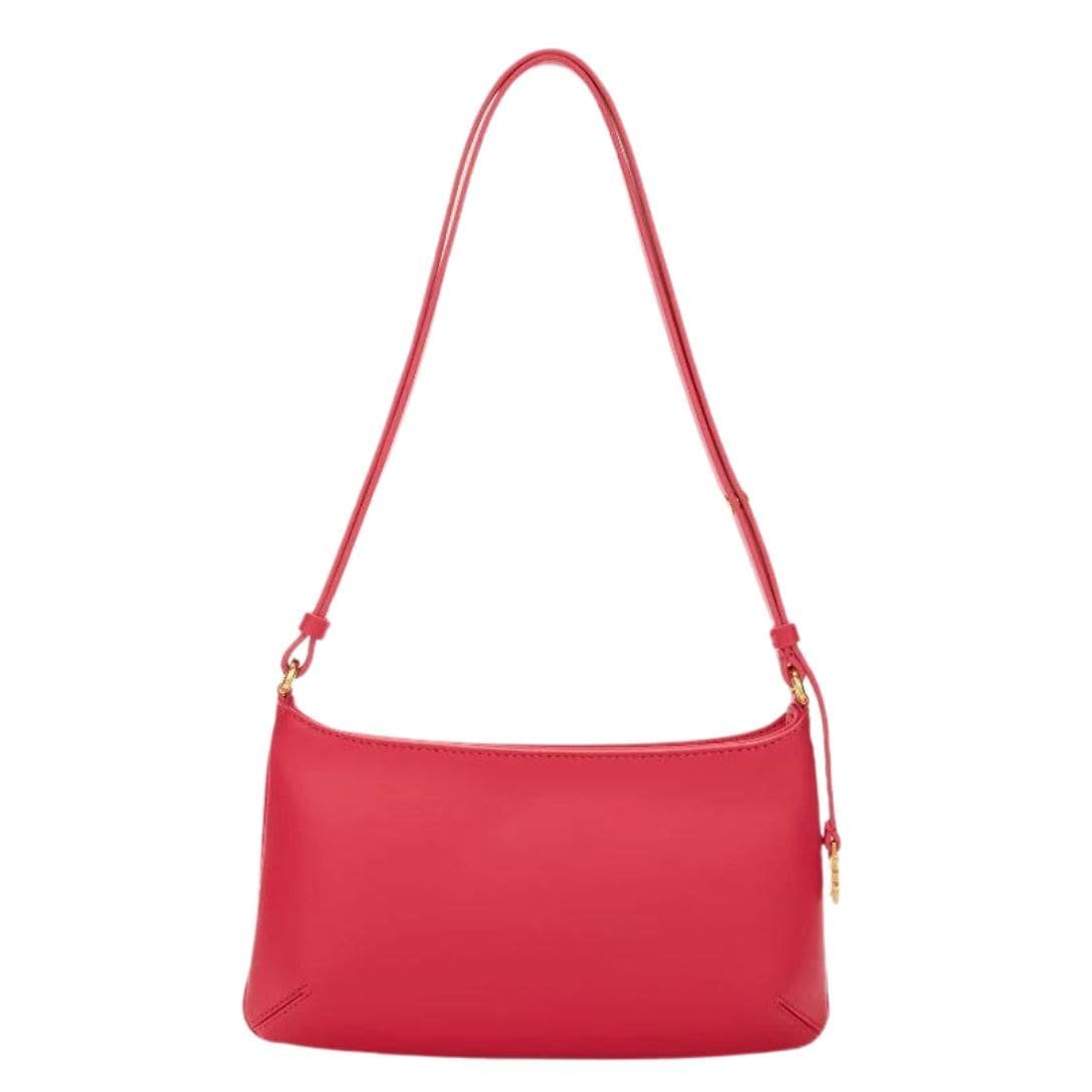 The Giorgina Bag features a smooth leather exterior in a rich, deep hue that exudes luxury. The minimalist design is accentuated by subtle yet refined hardware, including a polished gold-tone chain strap that adds a hint of glamour. This chain strap can be adjusted or detached, allowing for versatility in styling—from a chic shoulder bag to a more casual crossbody.