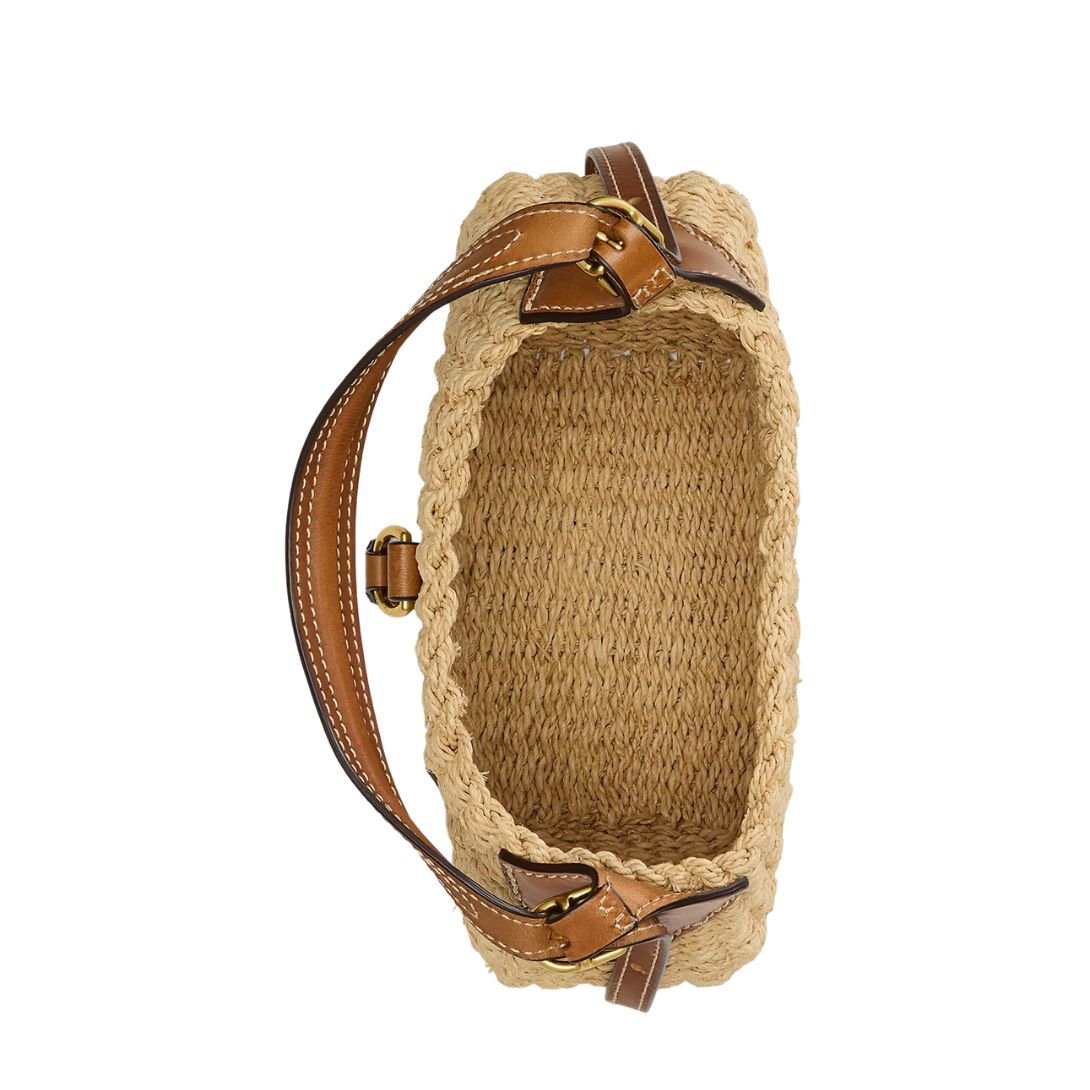 Inspired by the spirit of adventure, romance, and optimism, this small shoulder bag from the Polo ID collection combines artisanal texture with classic sophistication. Crafted from intricately twisted raffia and finished with Italian leather trim, it features a subtly equestrian silhouette enhanced by raised bombé strap detailing and Hutton metal buckles.