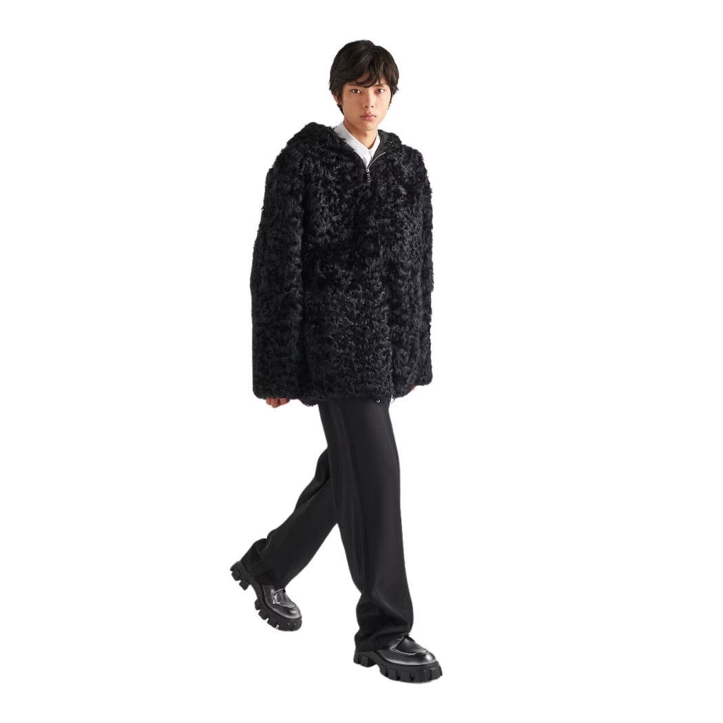 At first glance, the Prada Kalgan Jacket impresses with its silhouette, which strikes a perfect balance between structured form and effortless fluidity. The outer layer showcases a sophisticated interplay of textures, featuring premium Kalgan fur accents that lend a luxurious touch to the jacket’s overall design. The fur, known for its exceptional softness and sheen, adds a tactile richness that elevates the jacket to a statement piece.