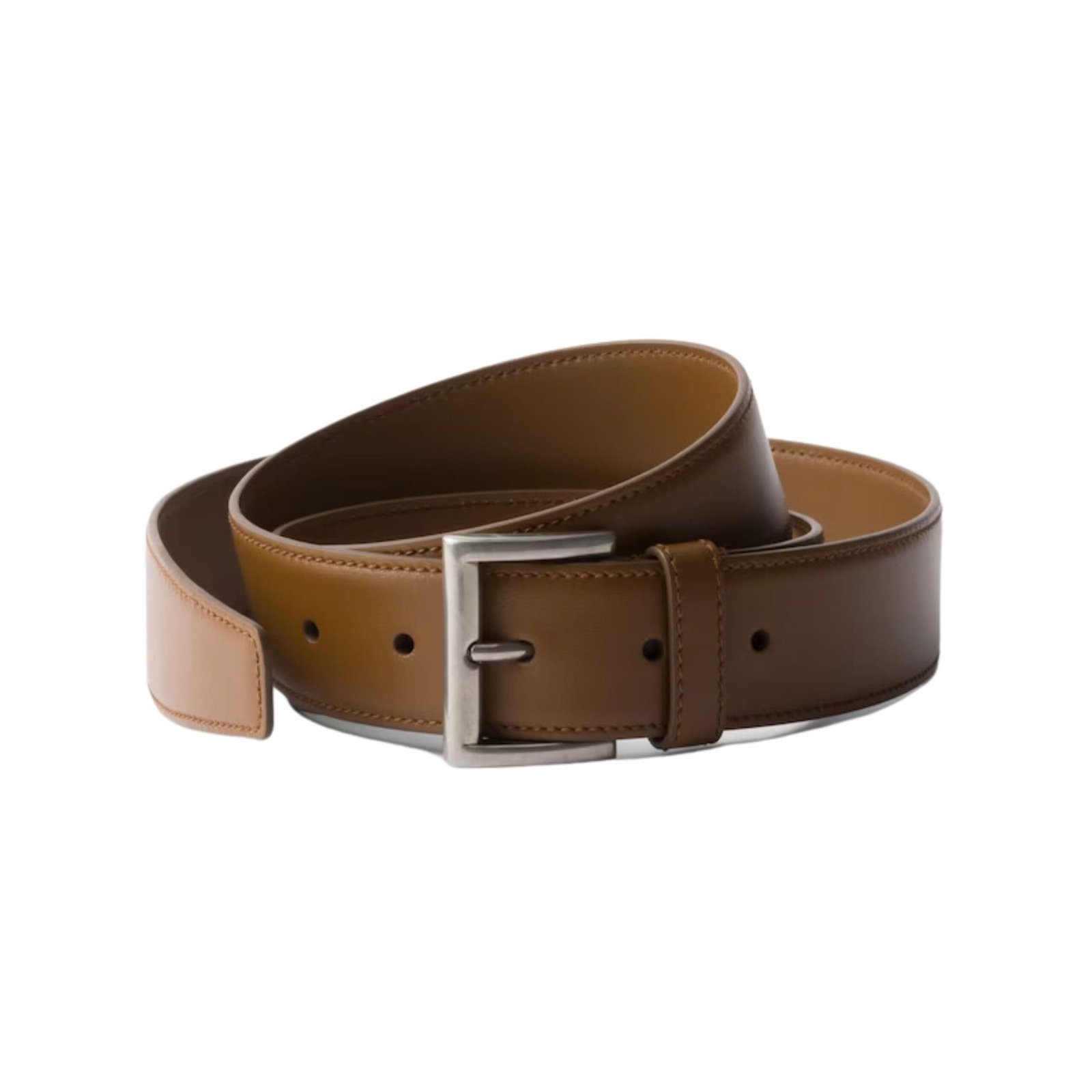 Adorned with the brand’s emblematic triangle logo, meticulously enameled to perfection, this accessory is a statement piece that elevates any ensemble. The logo, proudly showcased on the belt’s tip, accentuates its premium quality and attention to detail.