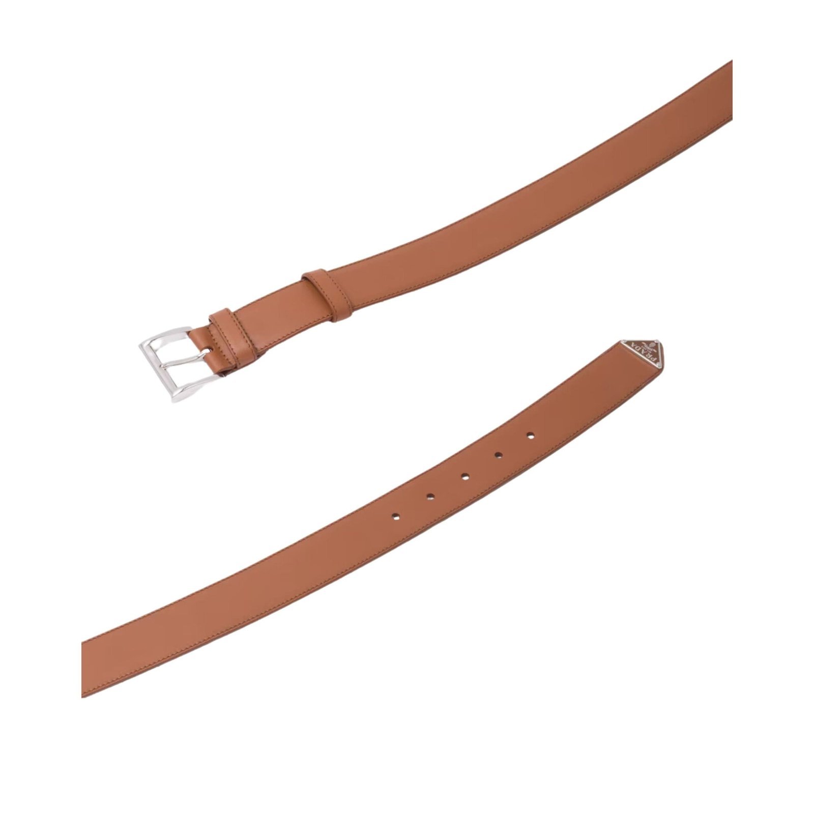 Crafted from the brand’s iconic Prada Leather Belt In Brown, this belt exudes timeless sophistication. Its design is characterized by a sleek metal buckle and an enameled-metal triangle logo, paying homage to the brand’s rich heritage. First seen on trunks created by Mario Prada in 1913, this emblematic logo adds a touch of vintage charm to the accessory.