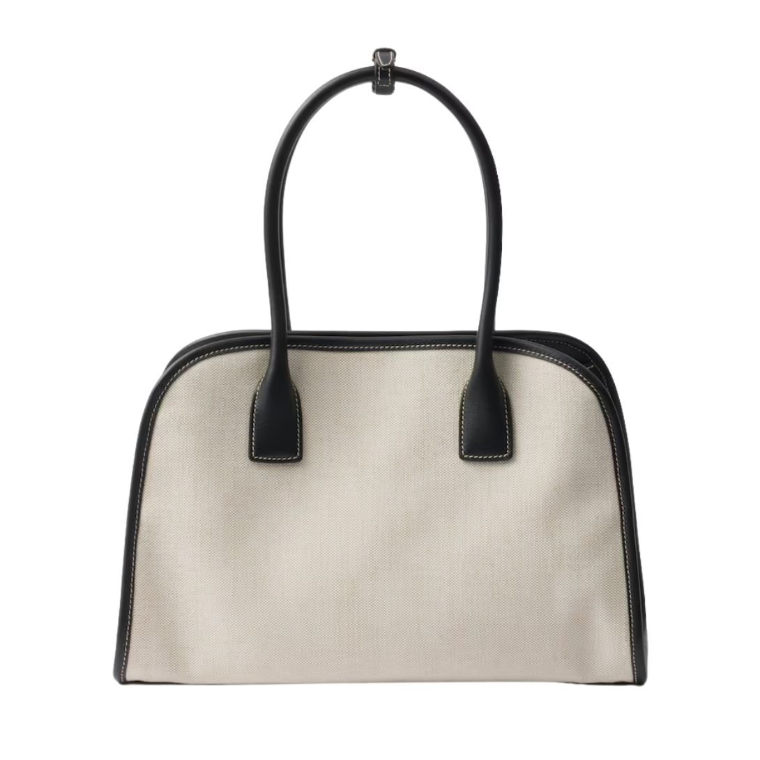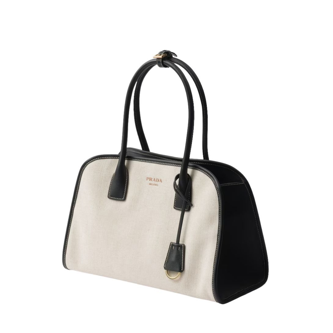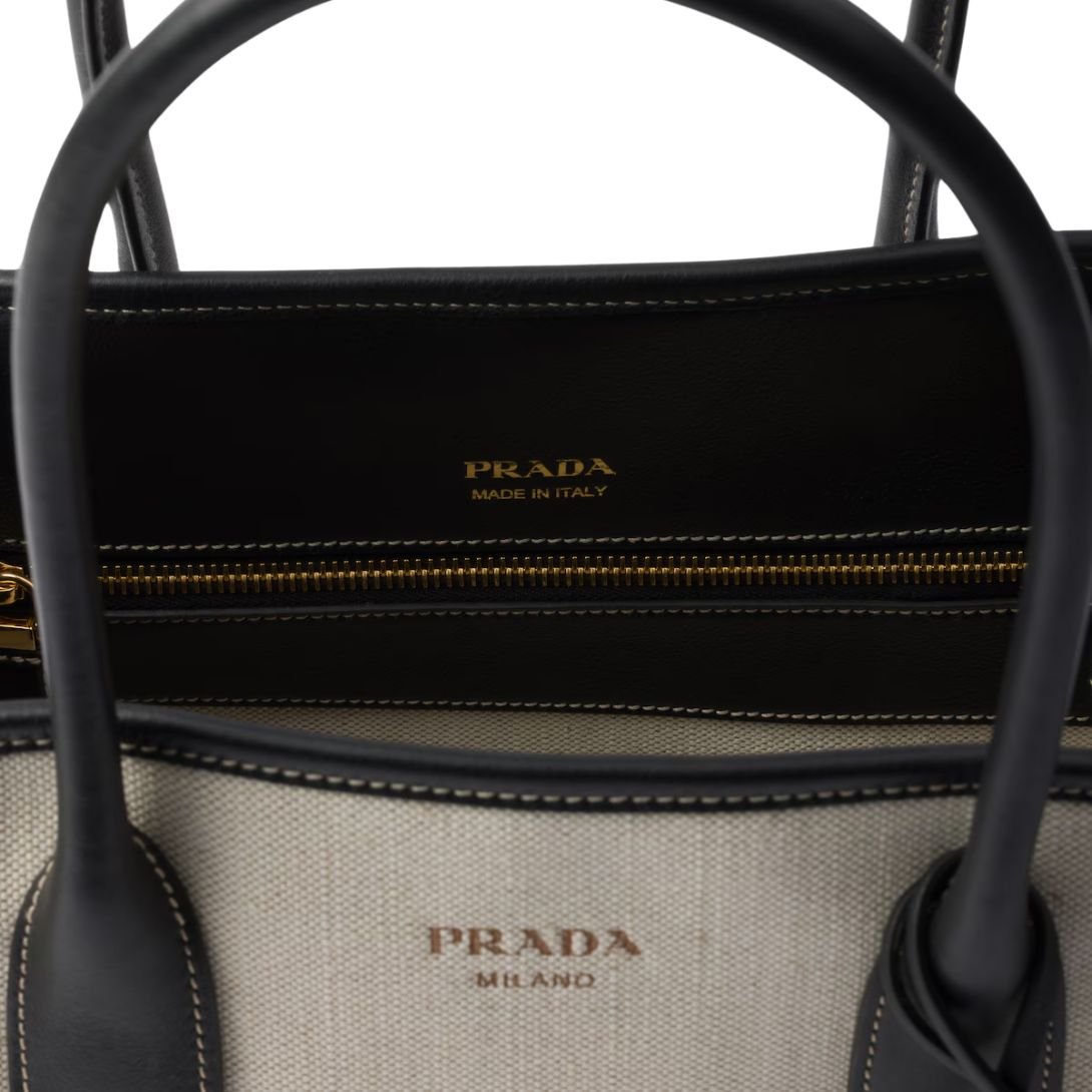 PRADA MEDIUM LINEN BLEND TOTE BAG FOR WOMEN TAN BLACK