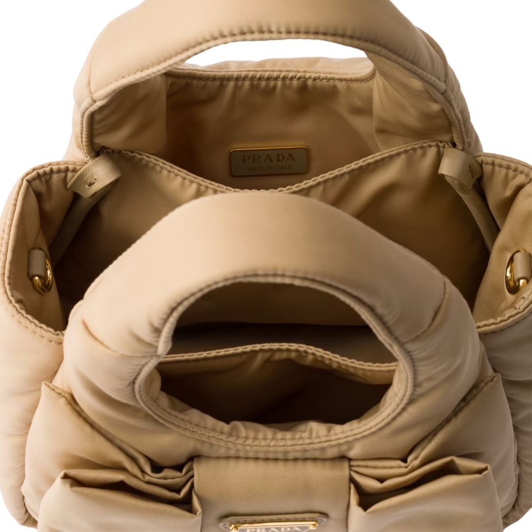 PRADA MINI RE-NYLON BOW SHOULDER BAG WOMEN CAMEL BROWN