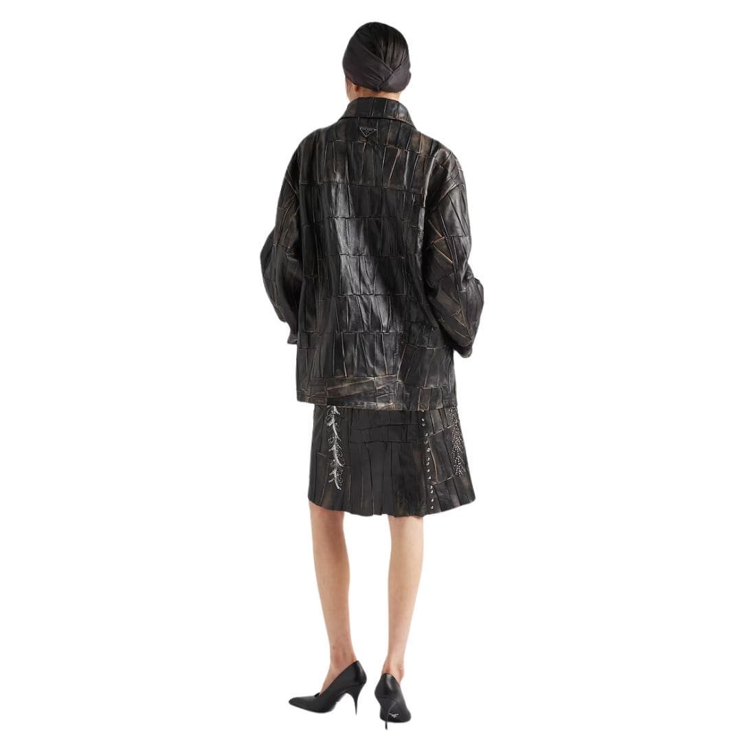 This Prada Nappa Leather Patchwork Skirt is not just a piece of clothing but a work of art that reflects the brand’s heritage of luxury and innovation. It is perfect for those who appreciate fashion forward pieces with a touch of classic elegance, making a bold statement while exuding sophistication and style.