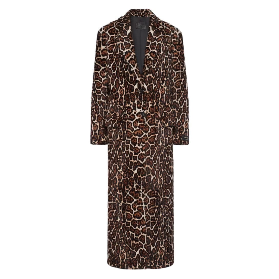 The PRADA Printed Shearling Bomber Jacket is a masterful blend of luxury, style, and functionality, epitomizing Prada’s commitment to exceptional craftsmanship and innovative design. This jacket stands out with its striking printed shearling exterior, showcasing a unique, eye-catching pattern that is both contemporary and sophisticated. The print, a testament to Prada’s avant-garde approach, adds a bold visual appeal, making it a statement piece in any wardrobe.PRADA PRINTED SHEARLING BOMBER JACKET