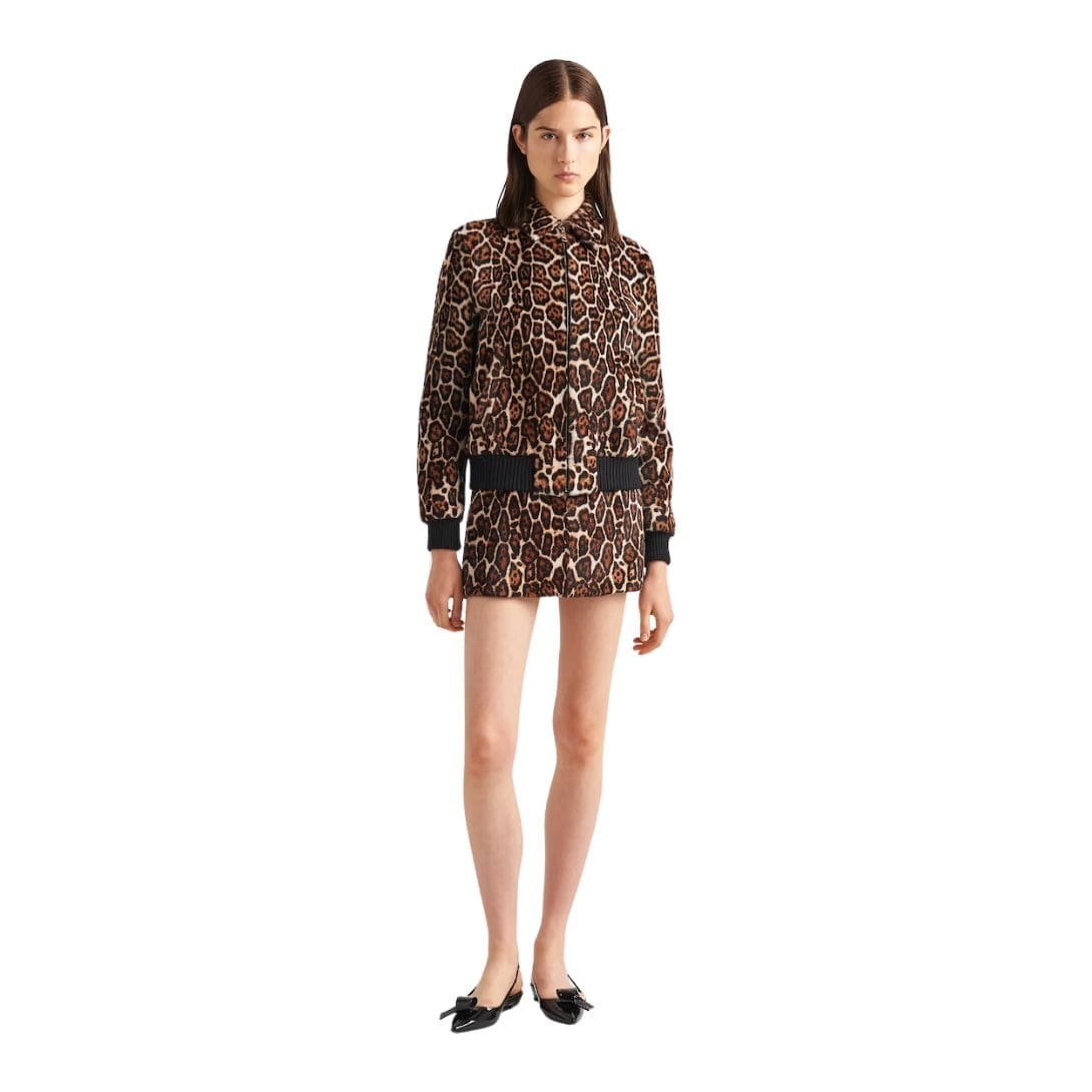 The bomber jacket design is a nod to classic military apparel, characterized by its boxy silhouette, ribbed cuffs, and waistband. This traditional framework is elevated by Prada’s modern touches, including sleek, concealed zippers and subtly branded hardware. The jacket features spacious pockets, both on the exterior and interior, adding a layer of functionality without compromising on style.