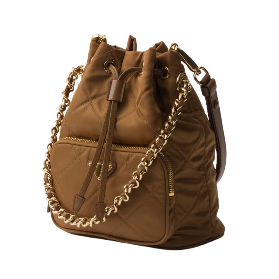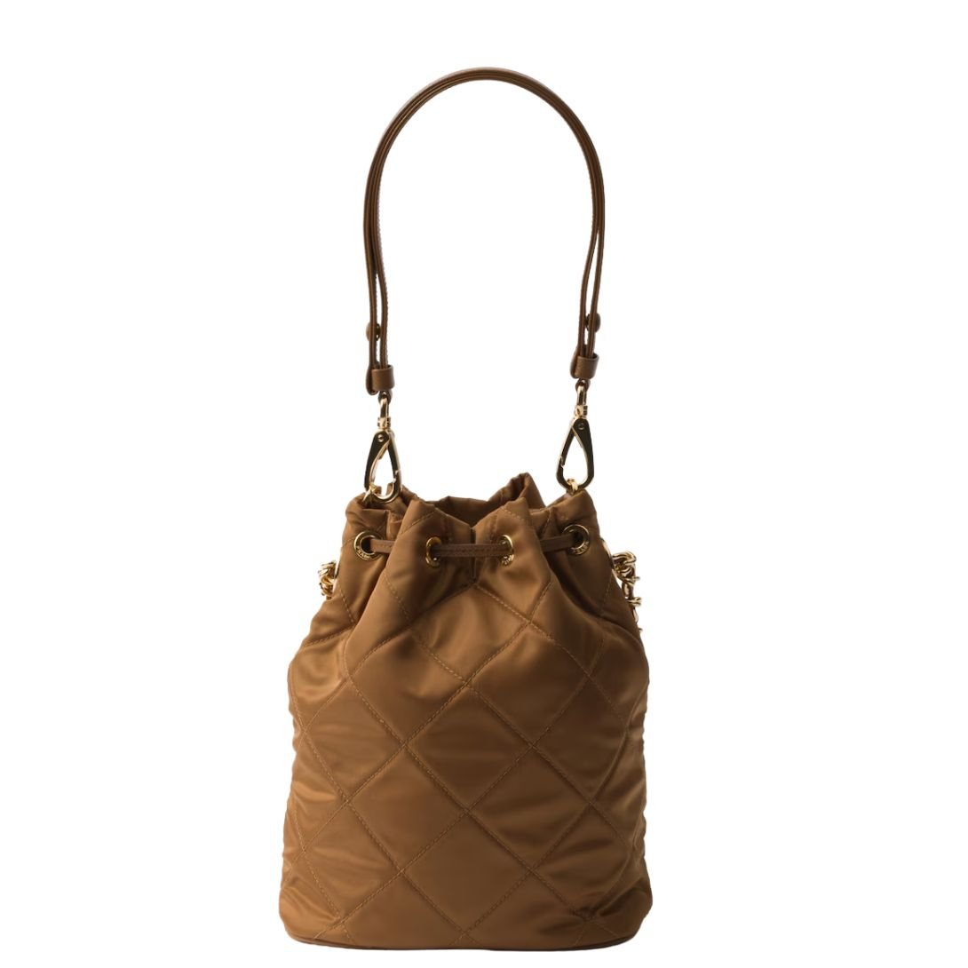 A modern fusion of innovation and artisan tradition, this Prada shoulder bag is crafted from the brand’s signature Re-Nylon—an eco-conscious, regenerated fabric made from recycled materials. Lightly padded and top-stitched for a soft, structured finish, the design offers both visual appeal and practical durability. Finished with the iconic enameled triangle logo and versatile details, it’s a refined yet forward-thinking accessory for everyday wear.